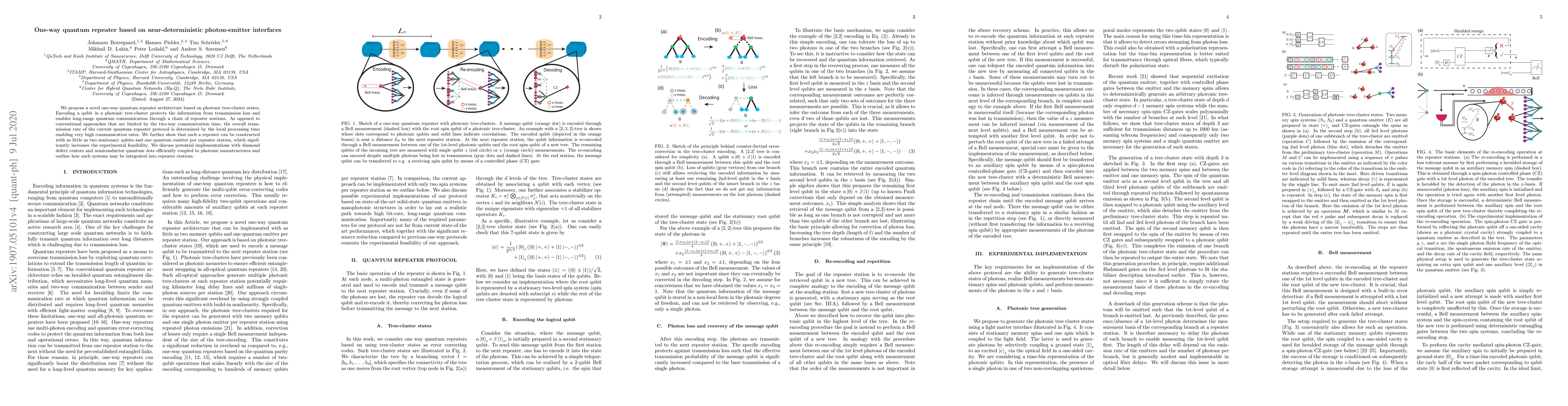 This paper proposes a novel one-way quantum repeater architecture using photonic tree-cluster states, which enhances long-range quantum communication by protecting information from loss. Unlike conventional two-way methods, this approach achieves high communication rates through local processing time.