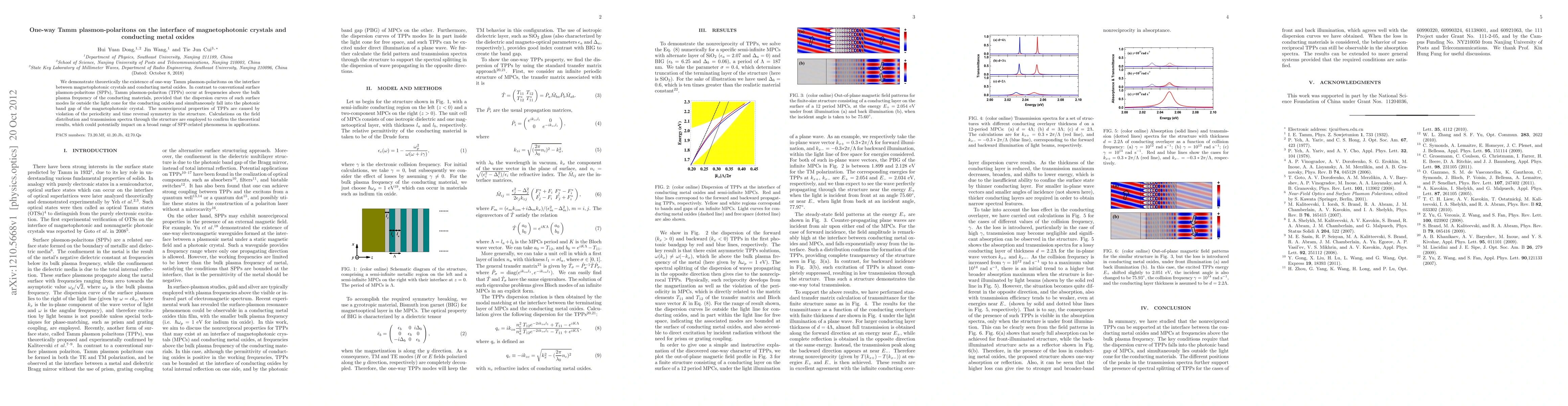 This paper theoretically demonstrates the existence of one-way Tamm plasmon-polaritons at the interface between magnetophotonic crystals and conducting metal oxides, showing nonreciprocal properties due to structural symmetry violations. The results could influence various surface plasmon-polariton applications.