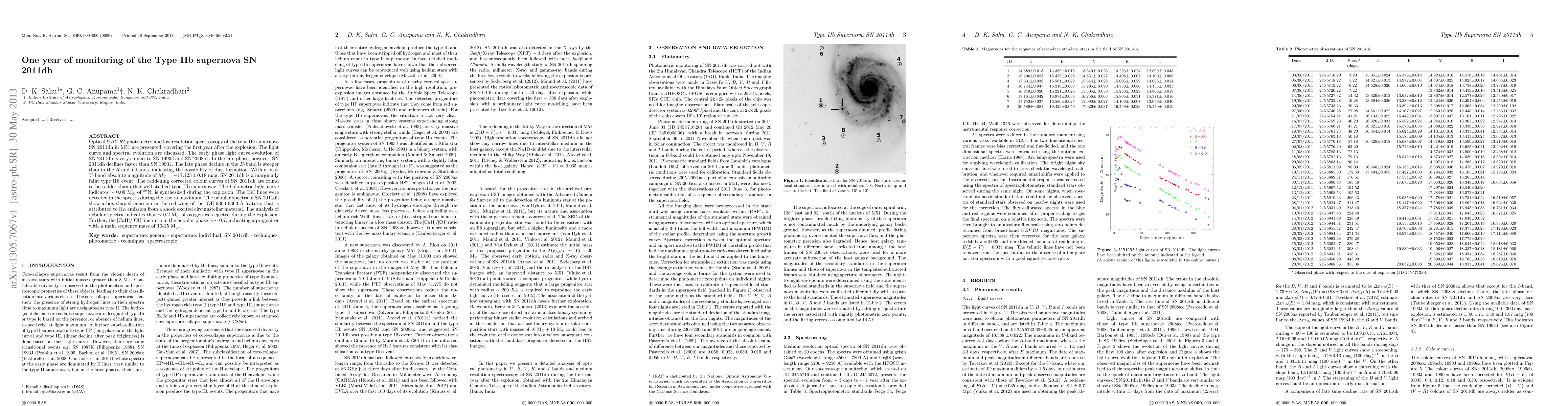 This study monitors a Type IIb supernova SN 2011dh for 1 year, revealing a peak magnitude of -17.123 mag and 0.09 Mô of nickel synthesized during the explosion, with implications for progenitor mass estimation.