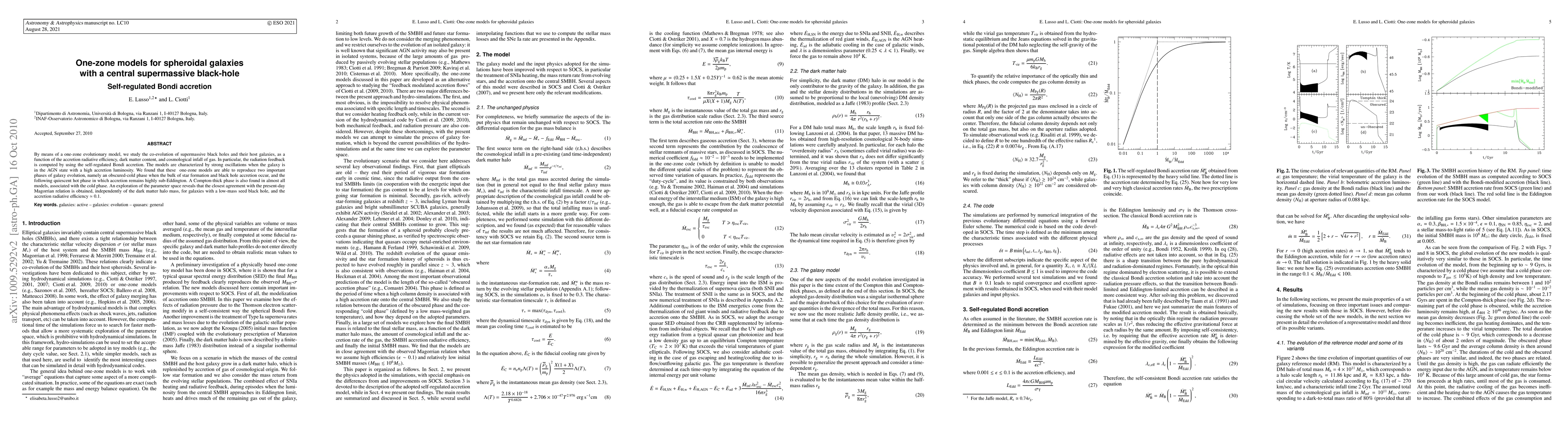 By means of a one-zone evolutionary model, we study the co-evolution of supermassive black holes and their host galaxies, as a function of the accretion radiative efficiency, dark matter content, and cosmological infall of gas. In particular, the radiation feedback is computed by using the self-regulated Bondi accretion. The models are characterized by strong oscillations when the galaxy is in the AGN state with a high accretion luminosity. We found that these one-zone models are able to reproduce two important phases of galaxy evolution, namely an obscured-cold phase when the bulk of star formation and black hole accretion occur, and the following quiescent hot phase in which accretion remains highly sub-Eddington. A Compton-thick phase is also found in almost all models, associated with the cold phase. An exploration of the parameter space reveals that the closest agreement with the present-day Magorrian relation is obtained, independently of the dark matter halo mass, for galaxies with a low-mass seed black hole, and the accretion radiative efficiency ~0.1.
