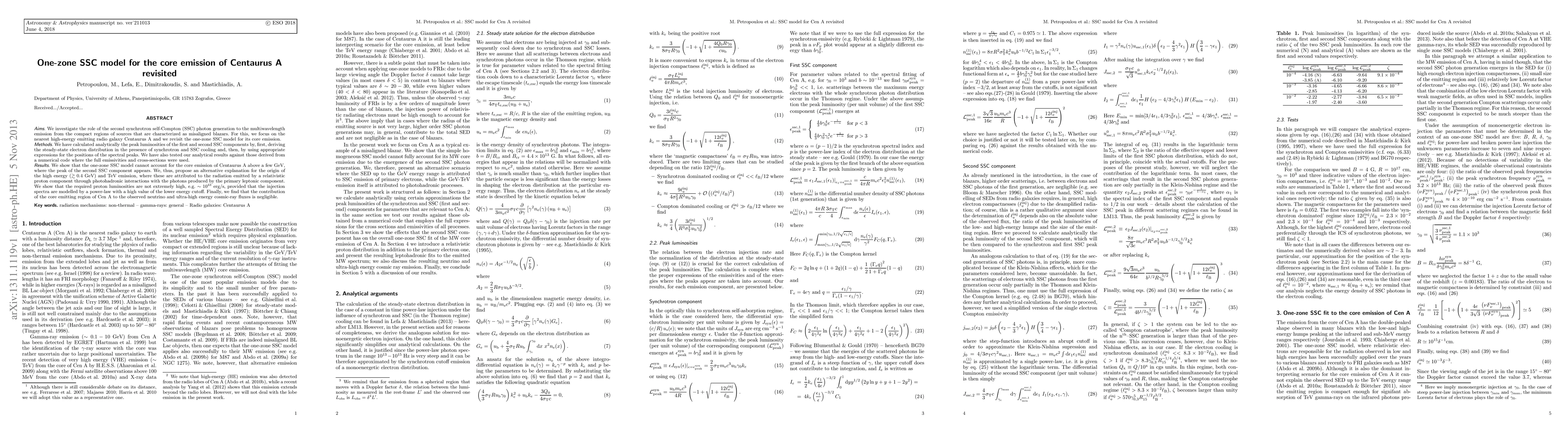 Researchers revisited the one-zone SSC model for Centaurus A's core emission, finding it fails to account for high-energy emission above 2 GeV, instead suggesting a proton component through photohadronic interactions as an alternative explanation.