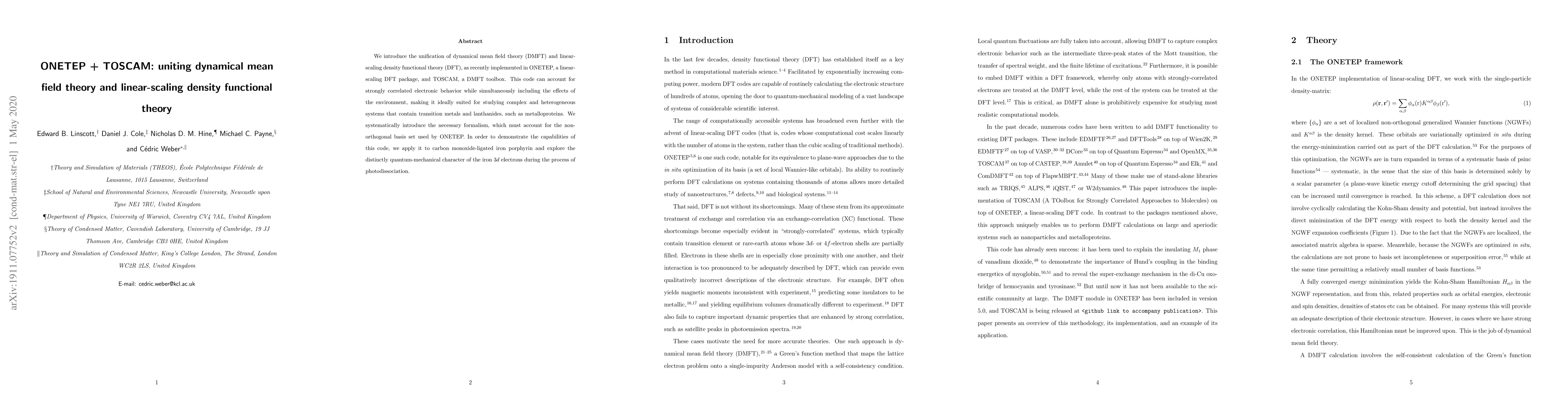 Researchers united dynamical mean field theory and linear-scaling density functional theory to study complex systems like metalloproteins, demonstrating the power of this new code in exploring quantum-mechanical character of transition metals.
