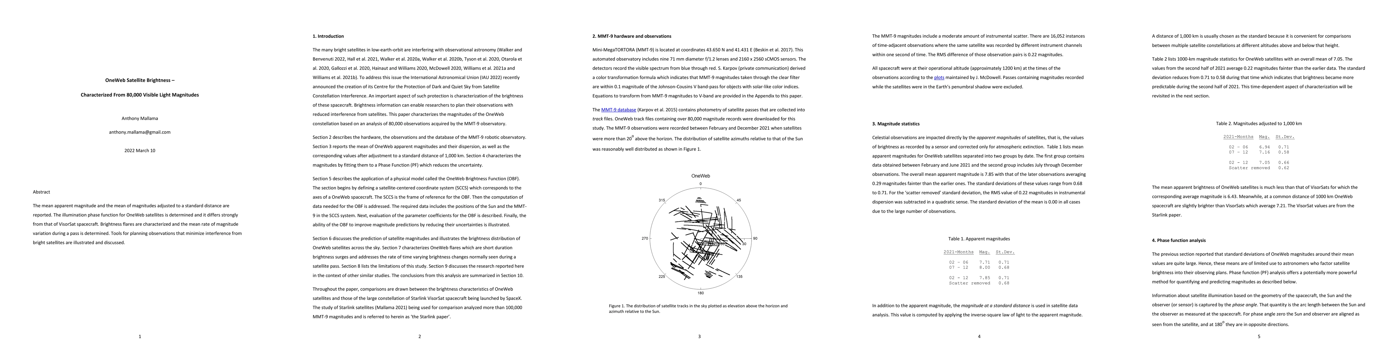 The paper reports mean apparent magnitude and brightness fluctuations of OneWeb satellites, differing from VisorSat spacecraft, and provides tools for minimizing satellite interference during observations.