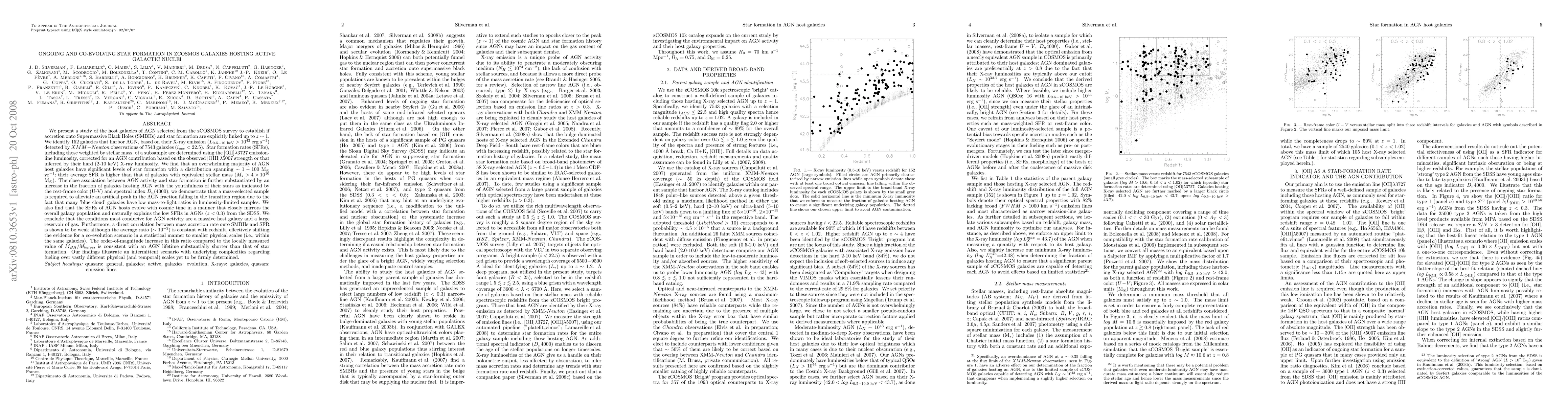 We present a study of the host galaxies of AGN selected from the zCOSMOS survey to establish if accretion onto supermassive black holes and star formation are explicitly linked up to z~1. We identify 152 galaxies that harbor AGN, based on XMM observations of 7543 galaxies (i<22.5). Star formation rates (SFRs), including those weighted by stellar mass, are determined using the [OII]3727 emission-line, corrected for an AGN contribution. We find that the majority of AGN hosts have significant levels of star formation with a distribution spanning ~1-100 Msun yr^-1. The close association between AGN activity and star formation is further substantiated by an increase in the AGN fraction with the youthfulness of their stars as indicated by the rest-frame color (U-V) and spectral index Dn(4000); we demonstrate that mass-selection alleviates an artifical peak falling in the transition region when using luminosity-limited samples. We also find that the SFRs of AGN hosts evolve with cosmic time in a manner that closely mirrors the overall galaxy population and explains the low SFRs in AGNs (z<0.3) from the SDSS. We conclude that the conditions most conducive for AGN activity are a massive host galaxy and a large reservoir of gas. Furthermore, a direct correlation between mass accretion rate onto SMBHs and SFR is shown to be weak although the average ratio is constant with redshift, effectively shifting the evidence for a co-evolution scenario in a statistical manner to smaller physical scales. Our findings illustrate an intermittent scenario with an AGN lifetime substantially shorter than that of star formation and underlying complexities regarding fueling over vastly different physical scales yet to be determined [Abridged].