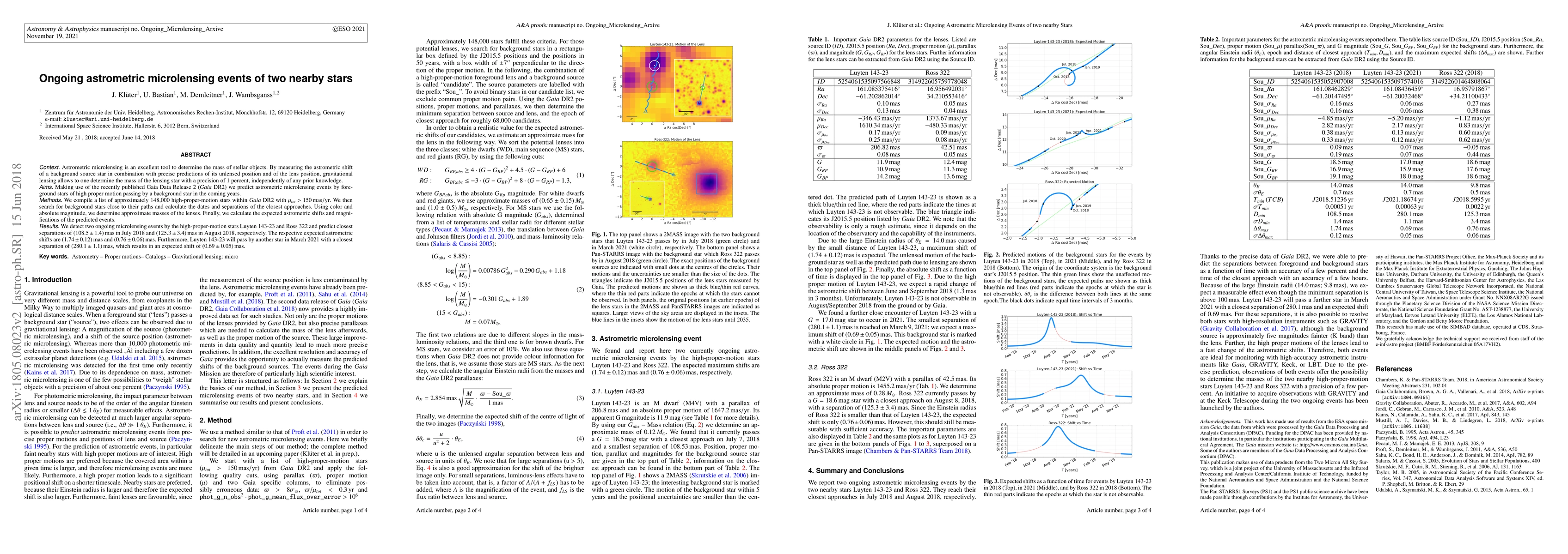 This paper utilizes astrometric microlensing to predict mass determinations for nearby stars, leveraging the Gaia DR2 catalog. It identifies two ongoing microlensing events by high proper motion stars Luyten 143-23 and Ross 322, predicting significant astrometric shifts in 2018 and a future event in 2021.