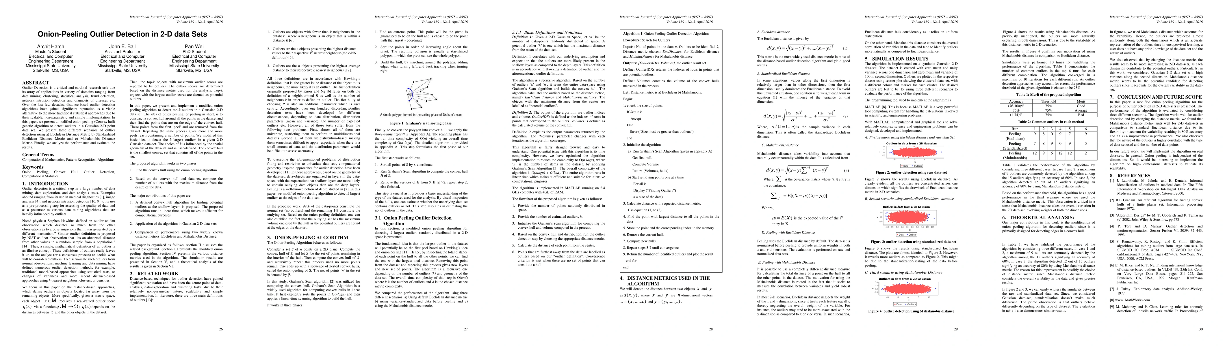 Outlier Detection is a critical and cardinal research task due its array of applications in variety of domains ranging from data mining, clustering, statistical analysis, fraud detection, network intrusion detection and diagnosis of diseases etc. Over the last few decades, distance-based outlier detection algorithms have gained significant reputation as a viable alternative to the more traditional statistical approaches due to their scalable, non-parametric and simple implementation. In this paper, we present a modified onion peeling (Convex hull) genetic algorithm to detect outliers in a Gaussian 2-D point data set. We present three different scenarios of outlier detection using a) Euclidean Distance Metric b) Standardized Euclidean Distance Metric and c) Mahalanobis Distance Metric. Finally, we analyze the performance and evaluate the results.