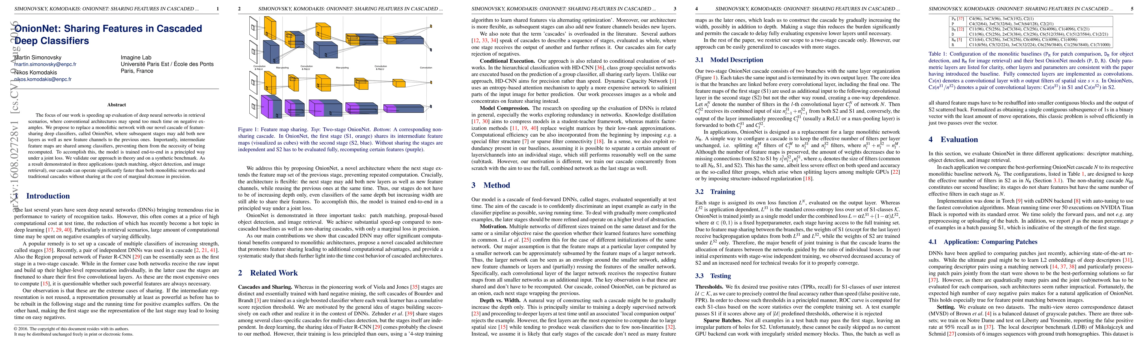 Researchers introduced OnionNet, a new deep learning model that accelerates evaluation of negative examples in retrieval scenarios by sharing intermediate features among cascaded classifiers. The approach achieves significant speedup without sacrificing precision in applications like object detection and image retrieval.
