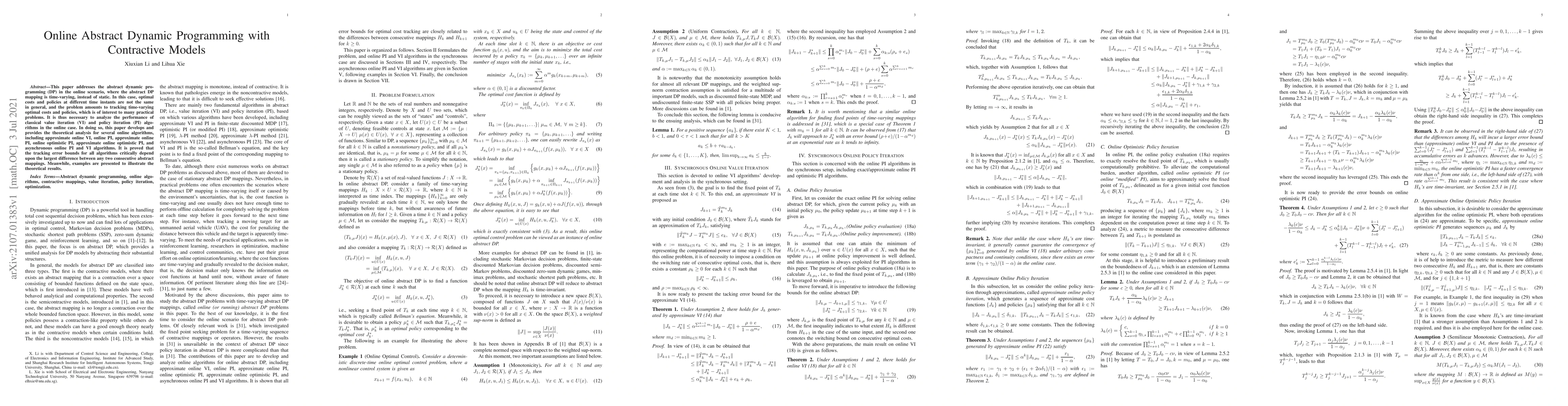 This paper explores online abstract dynamic programming (DP) with time-varying mappings, developing and analyzing several online algorithms to track optimal costs and policies. It proves that tracking error bounds depend on the difference between consecutive mappings, with examples illustrating the theoretical results.