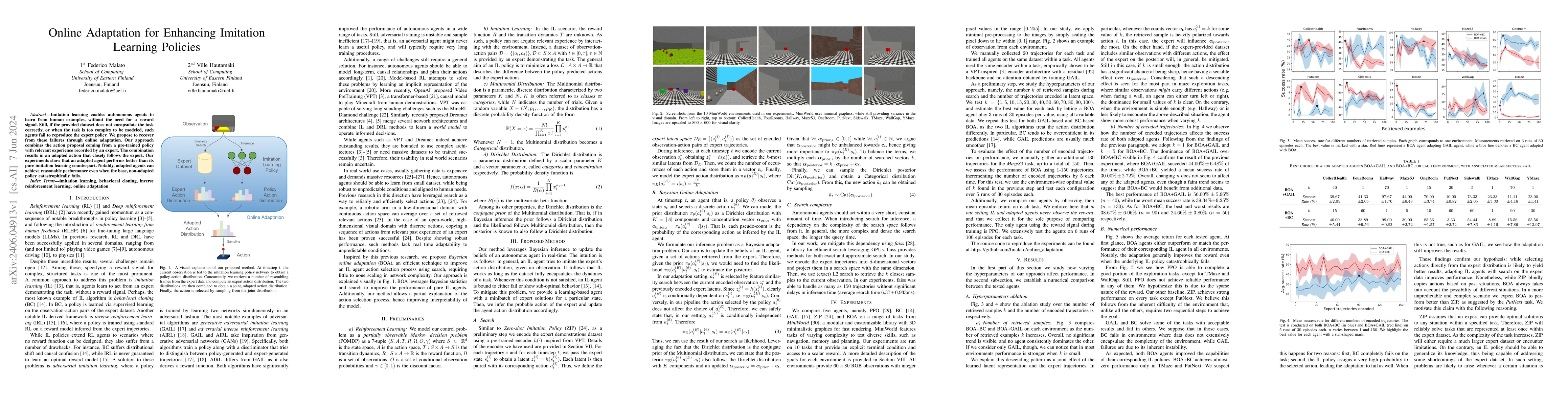 This research proposes an online adaptation method to enhance imitation learning policies, combining pre-trained action proposals with expert-recorded experiences to improve agent performance. Experiments demonstrate that adapted agents outperform non-adapted ones, especially in scenarios where the initial policy fails.