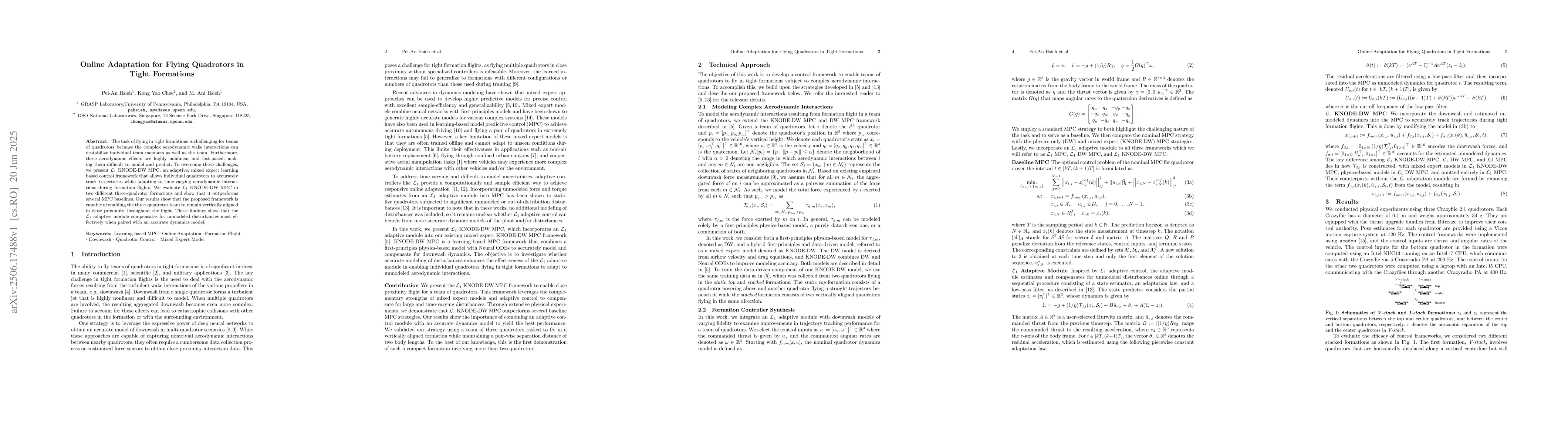 The research presents L1 KNODE-DW MPC, an adaptive control framework for quadrotors in tight formations, utilizing mixed expert learning and L1 adaptive control to handle time-varying aerodynamic interactions.