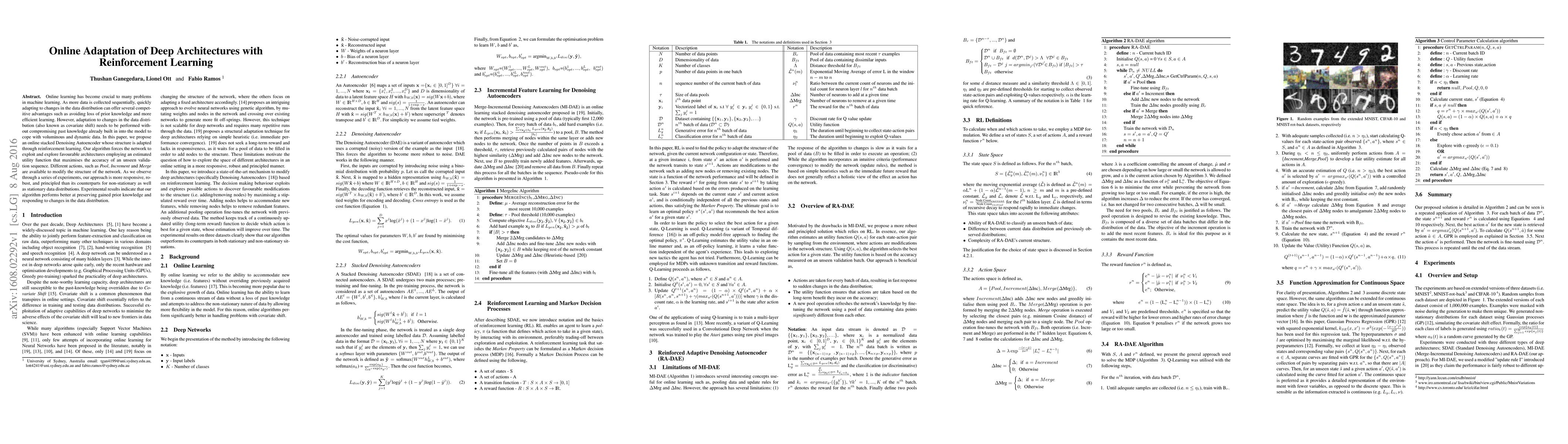 This paper proposes an online stacked Denoising Autoencoder that adapts to changes in data distribution using reinforcement learning, outperforming other approaches in preserving prior knowledge and responding to changes.