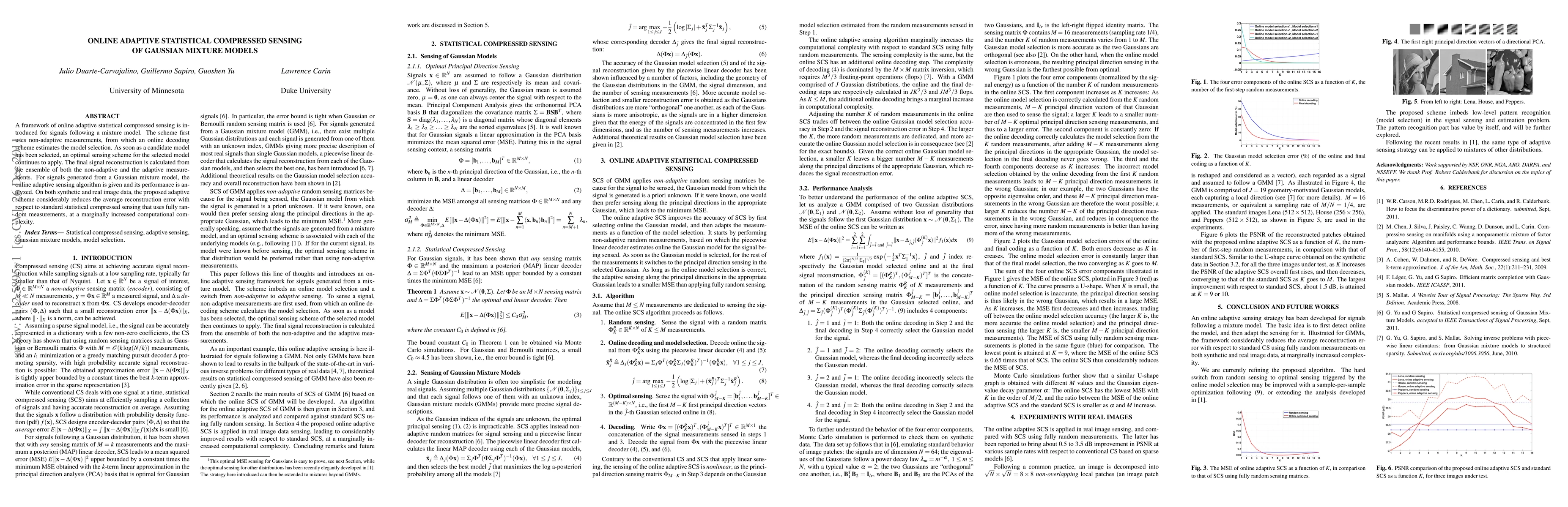 This paper introduces an online adaptive statistical compressed sensing framework for signals modeled by Gaussian mixture models. The method combines non-adaptive initial measurements with adaptive sensing once a model is selected, significantly reducing reconstruction error compared to fully random measurements, albeit with slightly higher computational complexity.