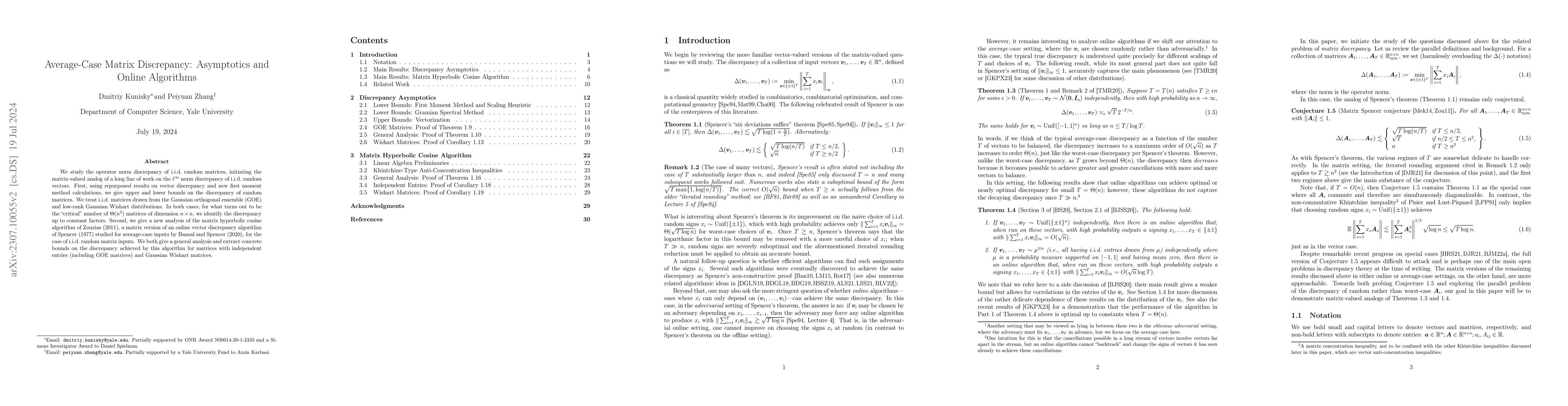 This paper investigates the average-case matrix discrepancy for i.i.d. random matrices, analyzing the matrix hyperbolic cosine algorithm and establishing both upper and lower bounds on its performance. It demonstrates the algorithm's optimality up to logarithmic terms for specific distributions.