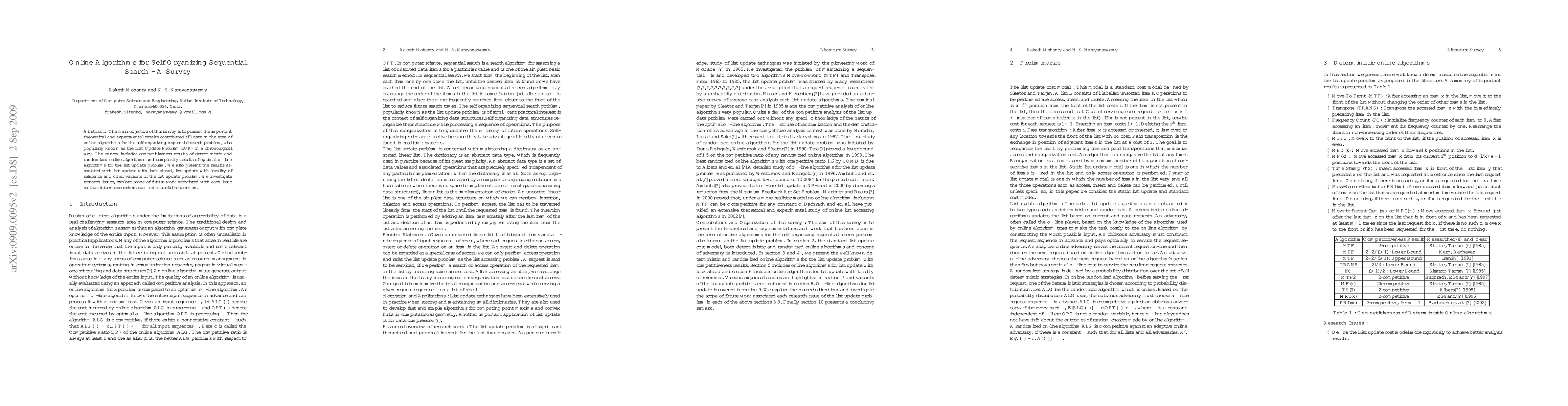 The main objective of this survey is to present the important theoretical and experimental results contributed till date in the area of online algorithms for the self organizing sequential search problem, also popularly known as the List Update Problem(LUP) in a chronological way. The survey includes competitiveness results of deterministic and randomized online algorithms and complexity results of optimal off line algorithms for the list update problem. We also present the results associated with list update with look ahead, list update with locality of reference and other variants of the list update problem. We investigate research issues, explore scope of future work associated with each issue so that future researchers can find it useful to work on.