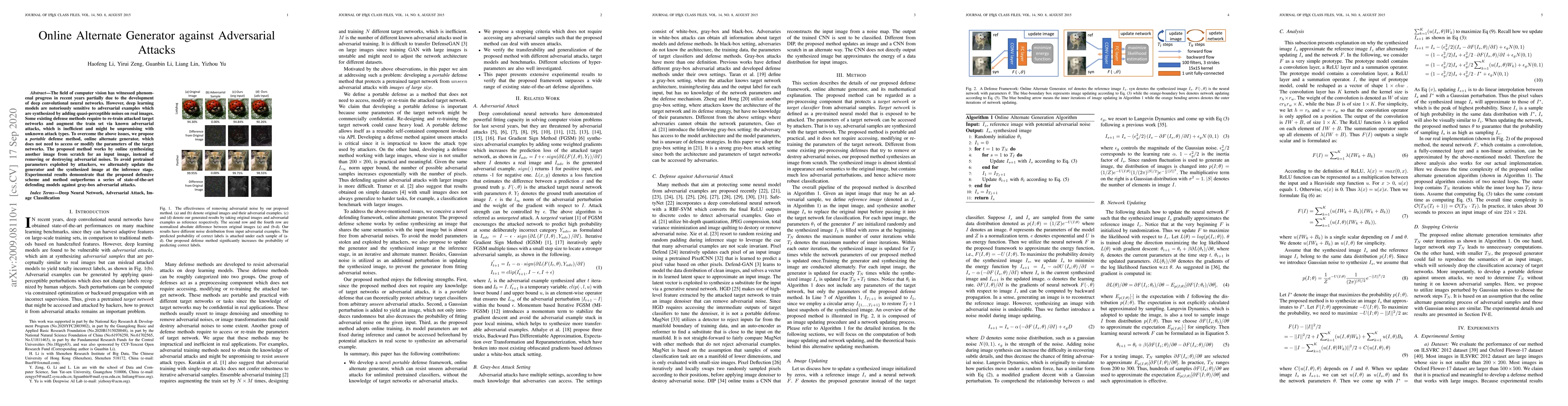 The research introduces an 'online alternate generator' defense method for deep learning models in computer vision, which effectively counteracts adversarial attacks without needing to modify target networks. This method generates an alternate image online, alternately updating the generator and the synthesized image during inference, outperforming existing defense models in resisting gray-box adversarial attacks.