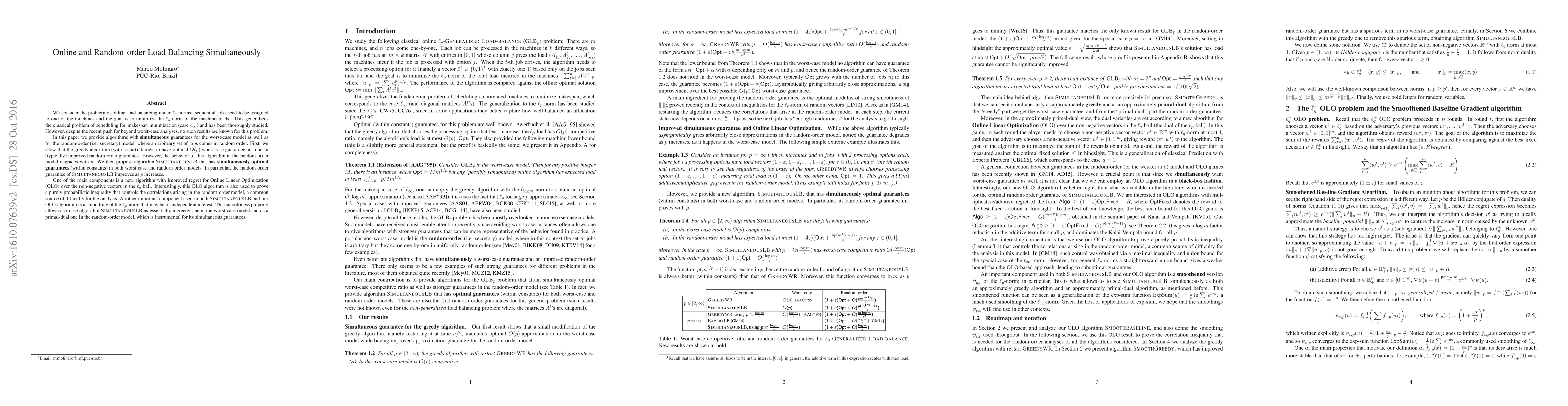 This paper presents an algorithm called SIMULTANEOUSLB that achieves simultaneous optimal guarantees for online load balancing under lp-norms in both worst-case and random-order models.