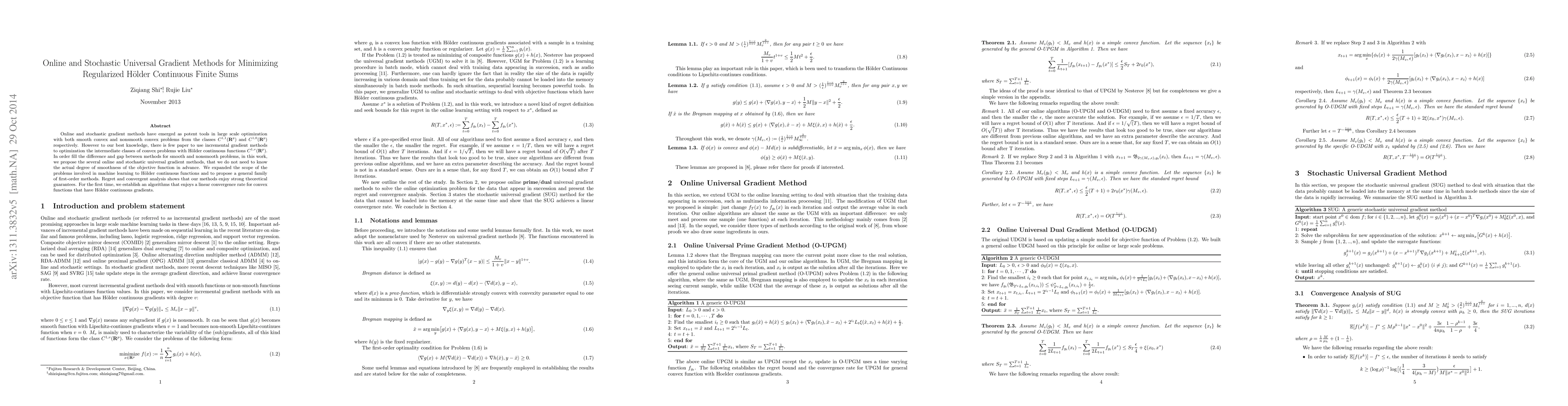 Online and stochastic gradient methods have emerged as potent tools in large scale optimization with both smooth convex and nonsmooth convex problems from the classes $C^{1,1}(\reals^p)$ and $C^{1,0}(\reals^p)$ respectively. However to our best knowledge, there is few paper to use incremental gradient methods to optimization the intermediate classes of convex problems with H\"older continuous functions $C^{1,v}(\reals^p)$. In order fill the difference and gap between methods for smooth and nonsmooth problems, in this work, we propose the several online and stochastic universal gradient methods, that we do not need to know the actual degree of smoothness of the objective function in advance. We expanded the scope of the problems involved in machine learning to H\"older continuous functions and to propose a general family of first-order methods. Regret and convergent analysis shows that our methods enjoy strong theoretical guarantees. For the first time, we establish an algorithms that enjoys a linear convergence rate for convex functions that have H\"older continuous gradients.