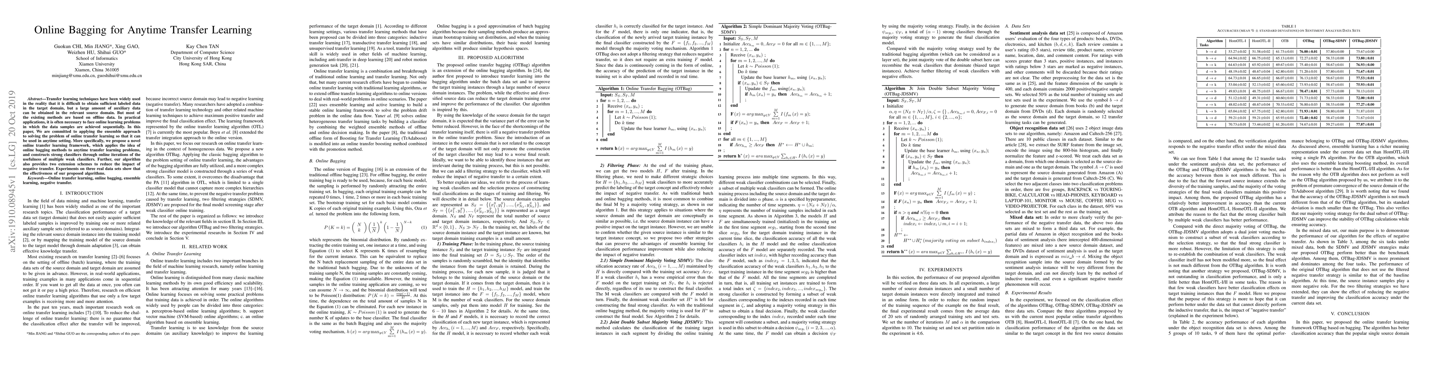 Researchers propose an online bagging method for anytime transfer learning, enabling seamless online updates in a sequential data stream. This approach provides strong classifiers through iterative weak classifier training and reduces negative transfer impact through two extension schemes.
