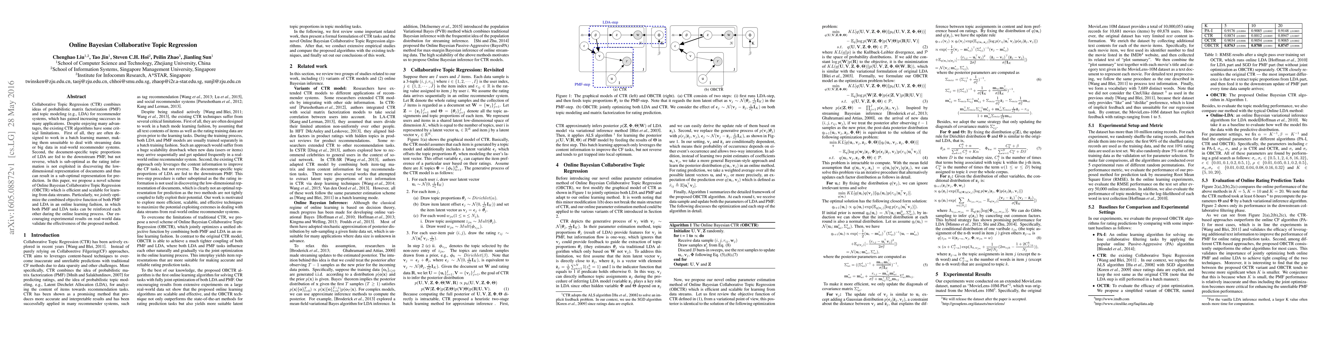 This paper proposes an Online Bayesian Collaborative Topic Regression (OBCTR) method to improve recommender systems by efficiently handling streaming data and optimizing both probabilistic matrix factorization and topic modeling in an online learning fashion, leading to better representation and prediction performance. Experimental results show the effectiveness of the proposed method on real-world datasets.