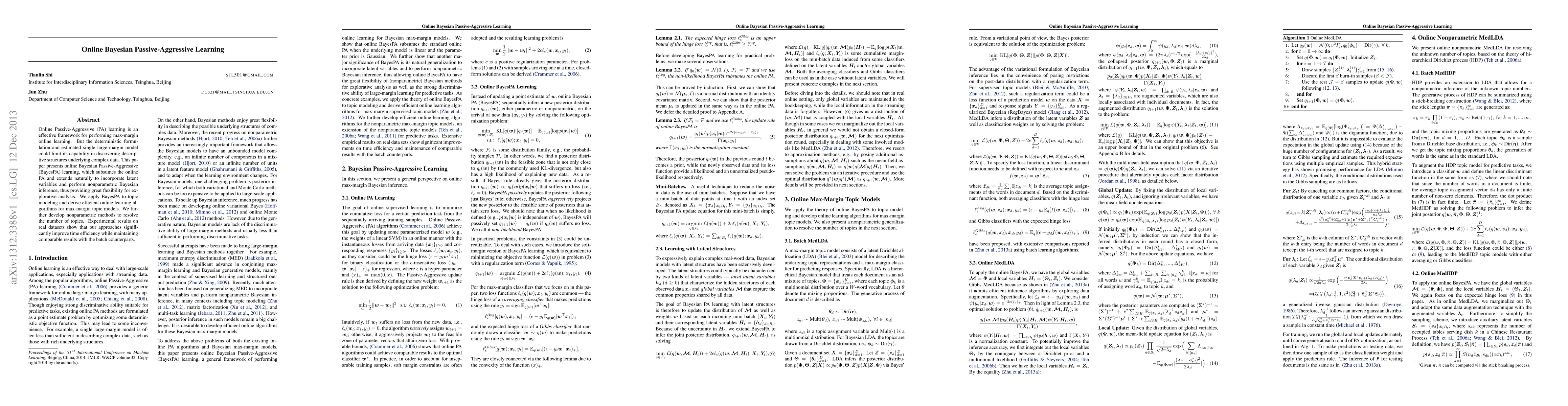 The paper presents online Bayesian Passive-Aggressive learning, which generalizes online PA learning to incorporate latent variables and perform nonparametric Bayesian inference, enabling efficient online learning for max-margin topic models.