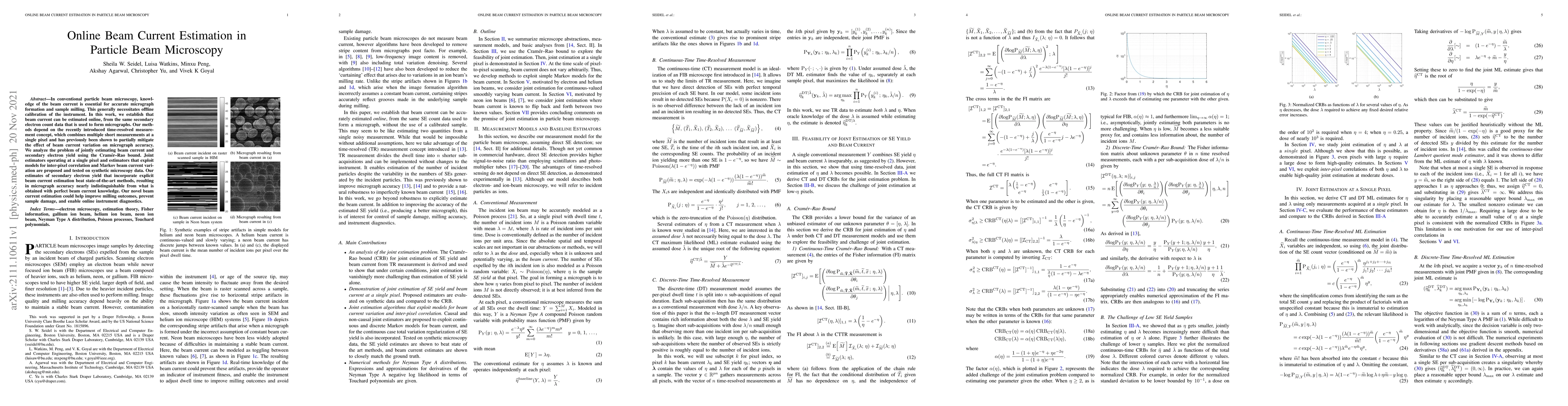 In conventional particle beam microscopy, knowledge of the beam current is essential for accurate micrograph formation and sample milling. This generally necessitates offline calibration of the instrument. In this work, we establish that beam current can be estimated online, from the same secondary electron count data that is used to form micrographs. Our methods depend on the recently introduced time-resolved measurement concept, which combines multiple short measurements at a single pixel and has previously been shown to partially mitigate the effect of beam current variation on micrograph accuracy. We analyze the problem of jointly estimating beam current and secondary electron yield using the Cramer-Rao bound. Joint estimators operating at a single pixel and estimators that exploit models for inter-pixel correlation and Markov beam current variation are proposed and tested on synthetic microscopy data. Our estimates of secondary electron yield that incorporate explicit beam current estimation beat state-of-the-art methods, resulting in micrograph accuracy nearly indistinguishable from what is obtained with perfect beam current knowledge. Our novel beam current estimation could help improve milling outcomes, prevent sample damage, and enable online instrument diagnostics.