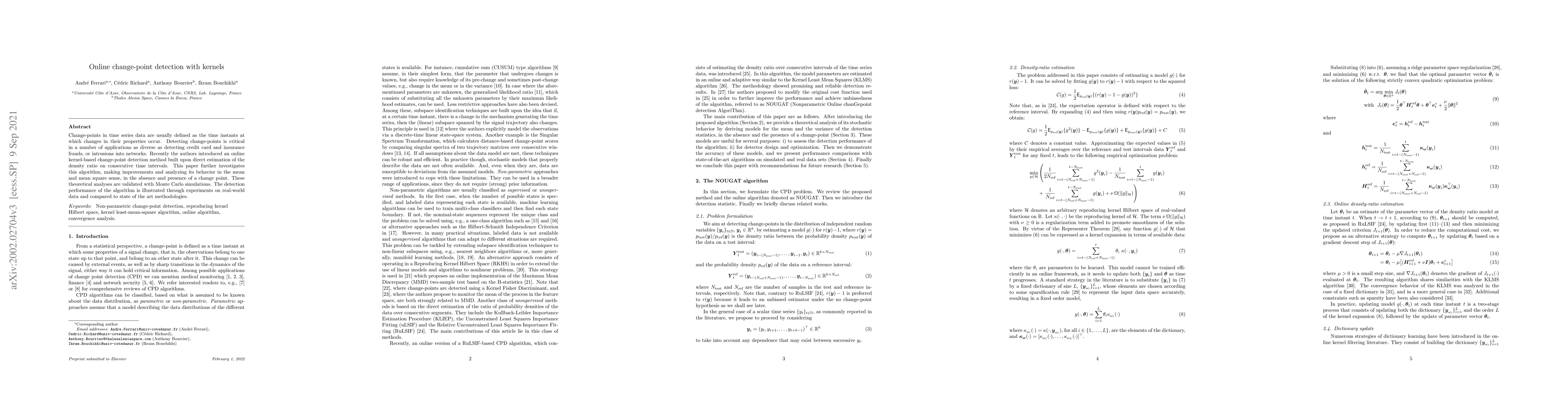 This paper refines an online kernel-based change-point detection method, analyzing its performance theoretically and validating it with simulations and real-world data comparisons. The method shows improved detection efficiency for applications like fraud detection and network intrusions.