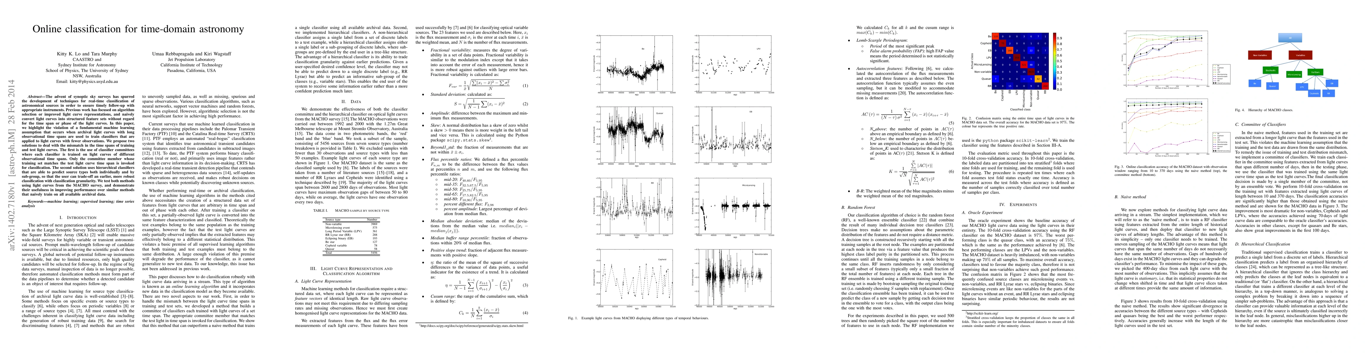 Researchers developed two new methods to improve online classification of astronomical sources, addressing the issue of mismatched time spans between training and test data. These solutions utilize classifier committees and hierarchical classifiers to increase accuracy and flexibility in real-time classification.