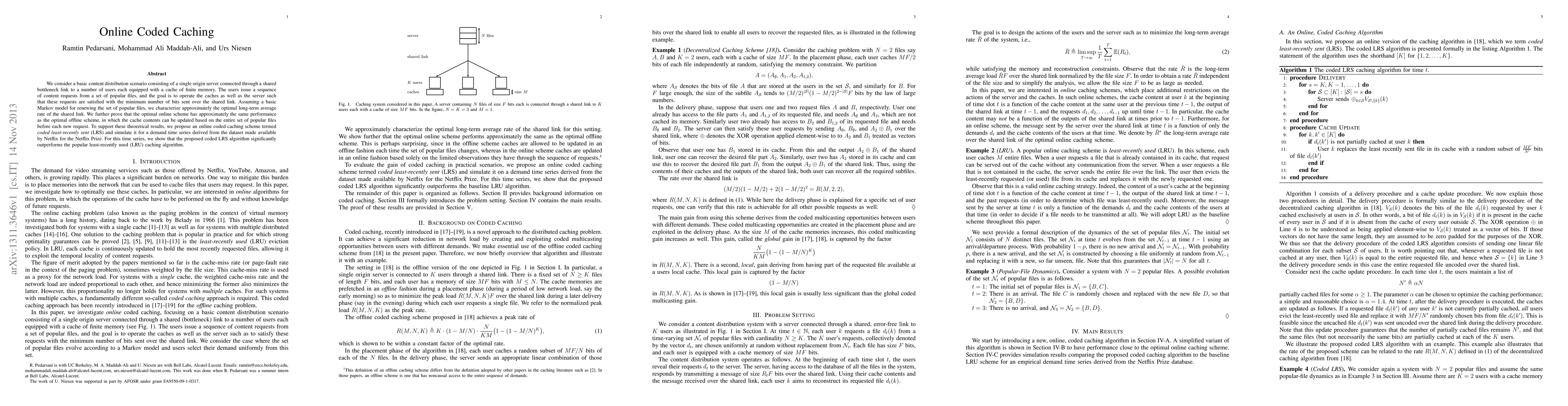 This paper explores an online coded caching scheme for content distribution, aiming to minimize data transfer over a shared link. It demonstrates that the proposed coded least-recently sent (LRS) algorithm outperforms the least-recently used (LRU) method, significantly reducing the required bandwidth compared to traditional caching strategies.