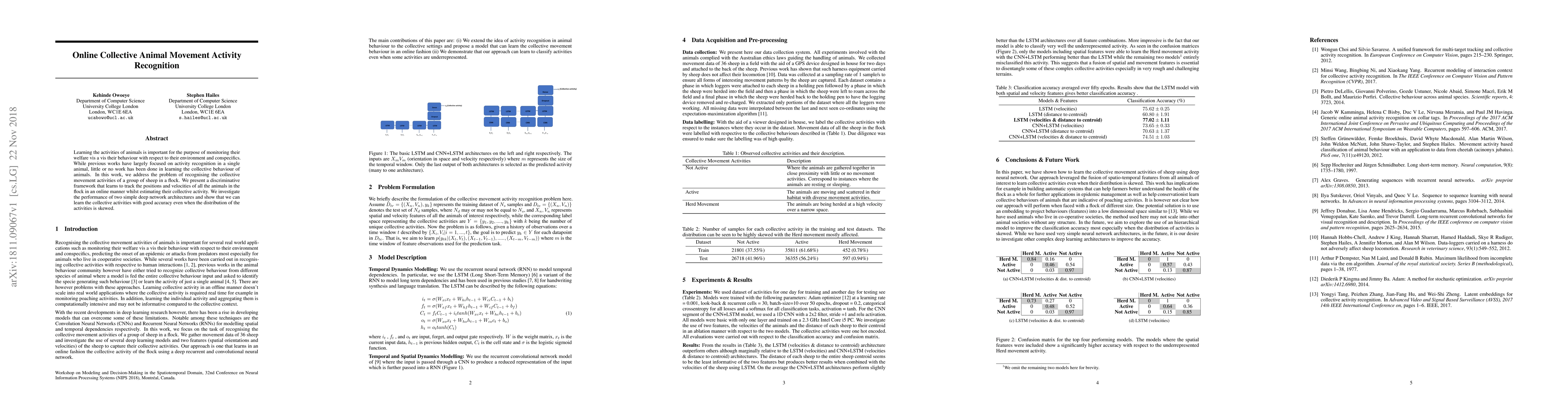 The paper presents an online framework for collective animal movement activity recognition, leveraging spatio-temporal features from all animals of interest to learn collective activities even when their distribution is skewed.