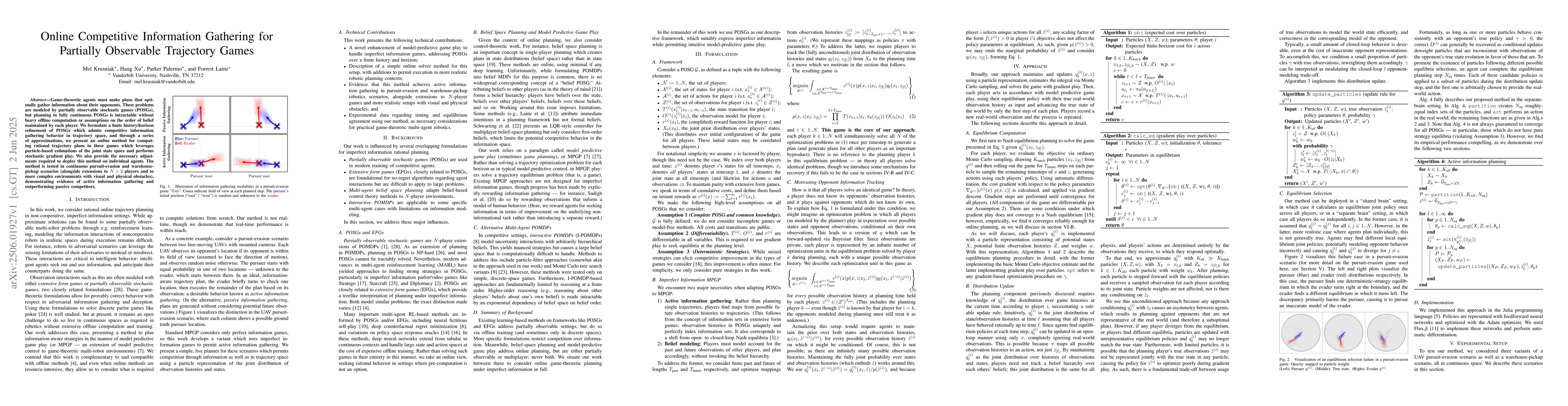 Researchers developed an online method for agents to gather competitive information in partially observable trajectory games, outperforming passive competitors in pursuit-evasion and warehouse-pickup scenarios.