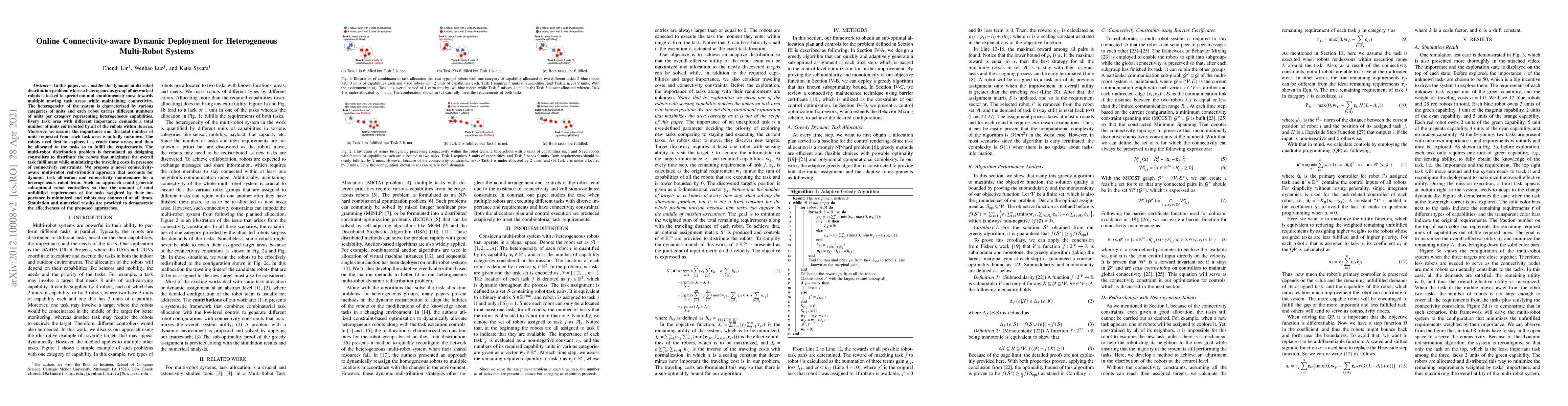 This paper proposes a connectivity-aware dynamic deployment strategy for heterogeneous multi-robot systems to optimize task fulfillment while maintaining connectivity. The approach aims to minimize unfulfilled task requirements and travel costs, demonstrating effectiveness through simulations.