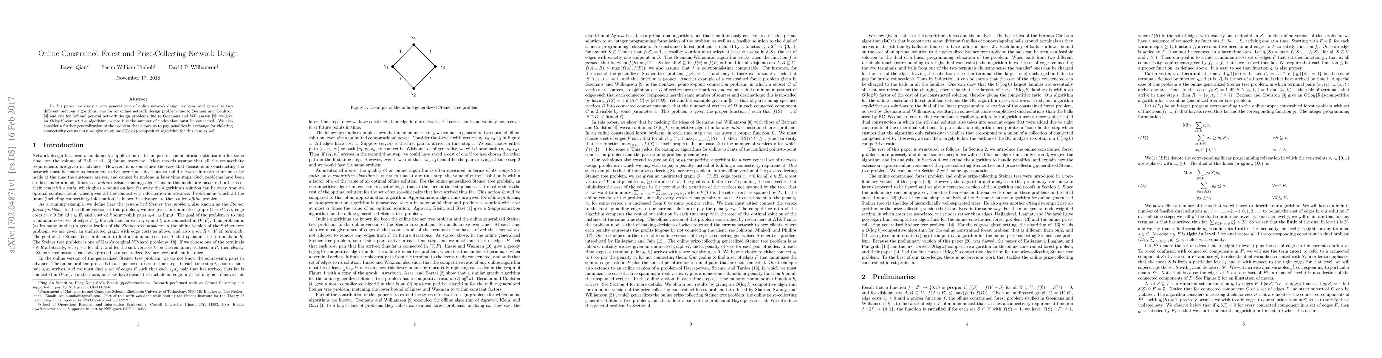 This paper presents an O(log k)-competitive online algorithm for a generalized network design problem, extending previous work by Berman and Coulston and Goemans and Williamson. It also introduces an online algorithm for a prize-collecting variant where penalties can be incurred for violating connectivity constraints.