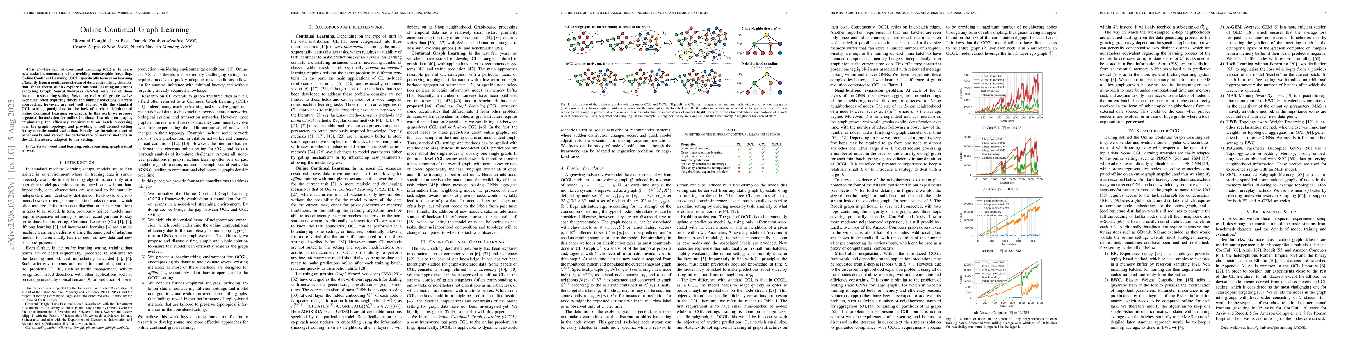 The aim of Continual Learning (CL) is to learn new tasks incrementally while avoiding catastrophic forgetting. Online Continual Learning (OCL) specifically focuses on learning efficiently from a continuous stream of data with shifting distribution. While recent studies explore Continual Learning on graphs exploiting Graph Neural Networks (GNNs), only few of them focus on a streaming setting. Yet, many real-world graphs evolve over time, often requiring timely and online predictions. Current approaches, however, are not well aligned with the standard OCL setting, partly due to the lack of a clear definition of online Continual Learning on graphs. In this work, we propose a general formulation for online Continual Learning on graphs, emphasizing the efficiency requirements on batch processing over the graph topology, and providing a well-defined setting for systematic model evaluation. Finally, we introduce a set of benchmarks and report the performance of several methods in the CL literature, adapted to our setting.
