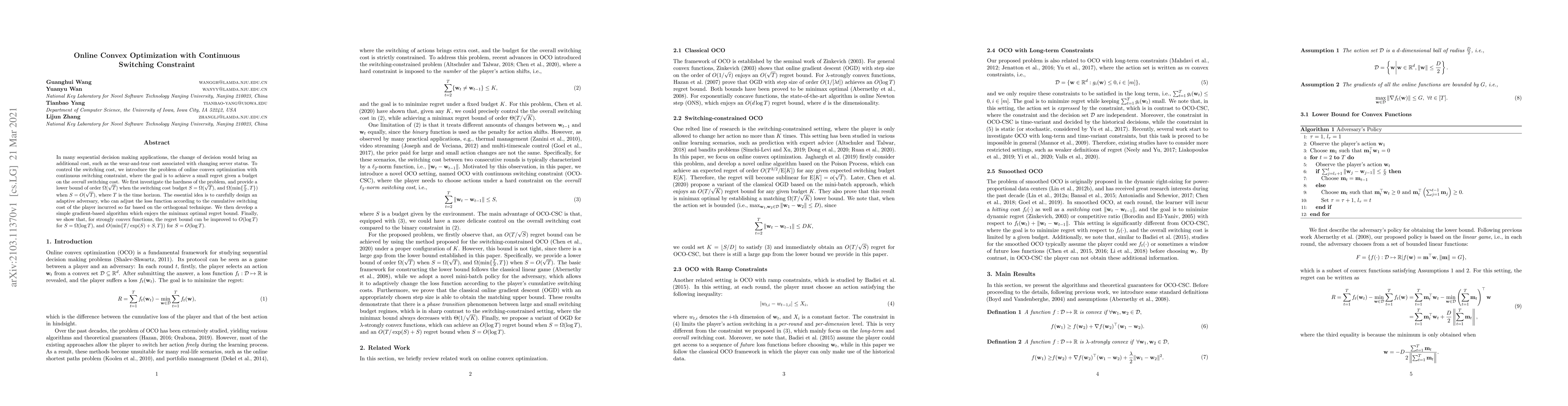 This paper explores online convex optimization under a continuous switching cost constraint, establishing regret bounds based on the switching cost budget. It introduces an adaptive adversary to prove lower bounds and develops a gradient-based algorithm achieving minimax optimal regret, with improved bounds for strongly convex functions.