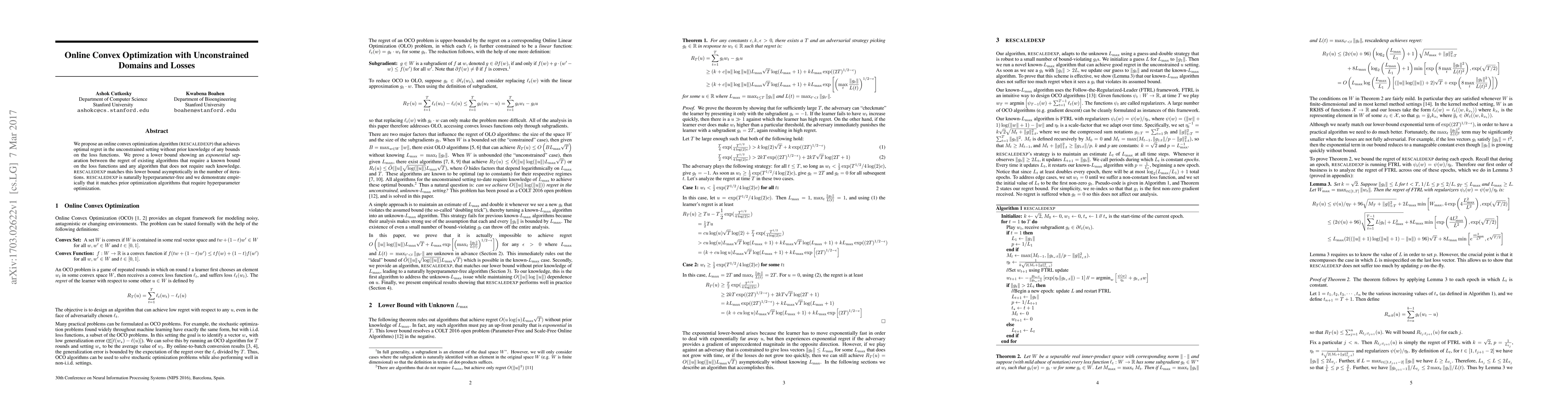 This paper introduces RescaledExp, an online convex optimization algorithm achieving optimal regret without prior loss bounds, and proves its asymptotic matching of a lower bound. It is hyperparameter-free and empirically comparable to algorithms requiring hyperparameter tuning.