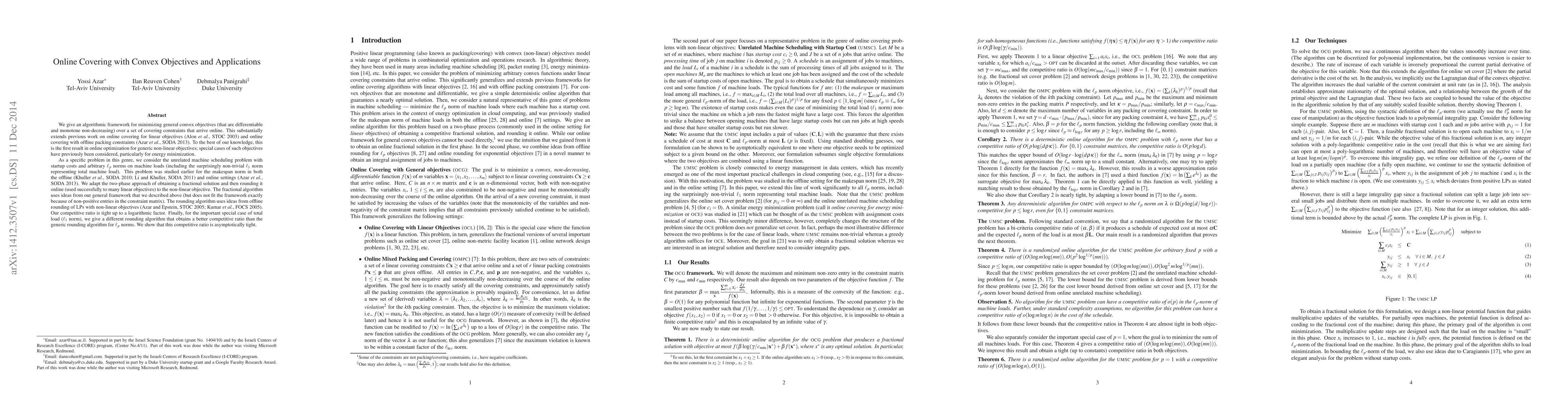 We give an algorithmic framework for minimizing general convex objectives (that are differentiable and monotone non-decreasing) over a set of covering constraints that arrive online. This substantially extends previous work on online covering for linear objectives (Alon {\em et al.}, STOC 2003) and online covering with offline packing constraints (Azar {\em et al.}, SODA 2013). To the best of our knowledge, this is the first result in online optimization for generic non-linear objectives; special cases of such objectives have previously been considered, particularly for energy minimization. As a specific problem in this genre, we consider the unrelated machine scheduling problem with startup costs and arbitrary $\ell_p$ norms on machine loads (including the surprisingly non-trivial $\ell_1$ norm representing total machine load). This problem was studied earlier for the makespan norm in both the offline (Khuller~{\em et al.}, SODA 2010; Li and Khuller, SODA 2011) and online settings (Azar {\em et al.}, SODA 2013). We adapt the two-phase approach of obtaining a fractional solution and then rounding it online (used successfully to many linear objectives) to the non-linear objective. The fractional algorithm uses ideas from our general framework that we described above (but does not fit the framework exactly because of non-positive entries in the constraint matrix). The rounding algorithm uses ideas from offline rounding of LPs with non-linear objectives (Azar and Epstein, STOC 2005; Kumar {\em et al.}, FOCS 2005). Our competitive ratio is tight up to a logarithmic factor. Finally, for the important special case of total load ($\ell_1$ norm), we give a different rounding algorithm that obtains a better competitive ratio than the generic rounding algorithm for $\ell_p$ norms. We show that this competitive ratio is asymptotically tight.