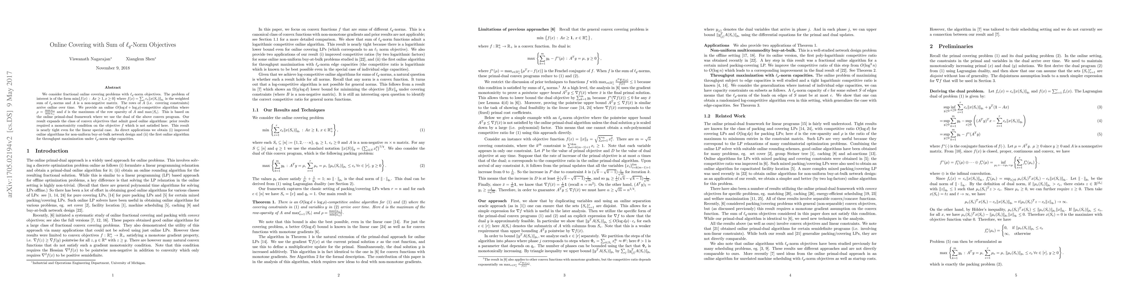 This paper presents an online $O(\log d+\log \rho)$-competitive algorithm for fractional covering problems with $\ell_q$-norm objectives, expanding the class of convex objectives that admit efficient online algorithms without requiring monotonicity. The algorithm is based on the online primal-dual framework and has applications to improved network design and throughput maximization under $\ell_p$-norm edge capacities.