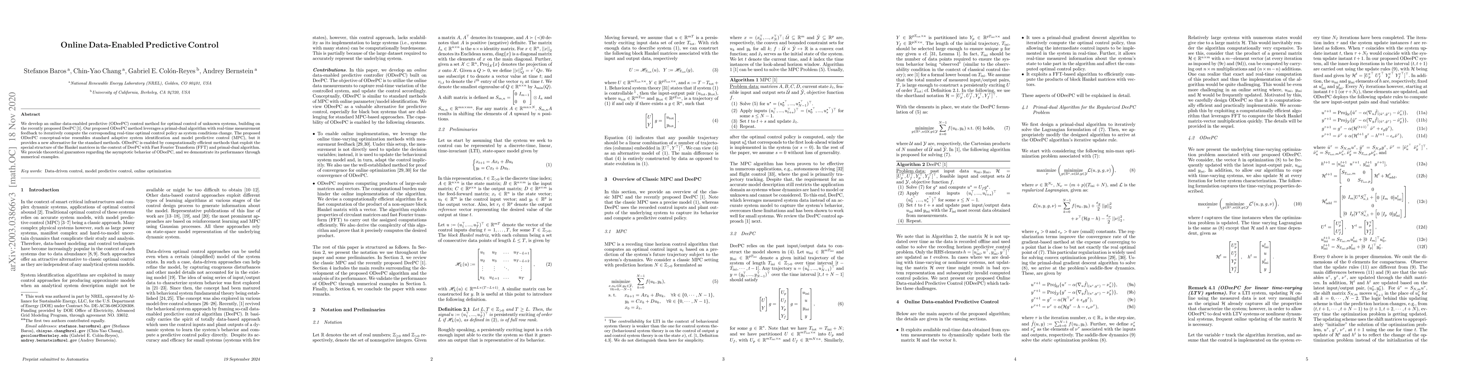 The paper introduces an online data-enabled predictive control (ODeePC) method for optimal control of unknown systems, utilizing a primal-dual algorithm with real-time feedback. It offers a new alternative to standard adaptive control methods, supported by efficient computational techniques and theoretical guarantees.