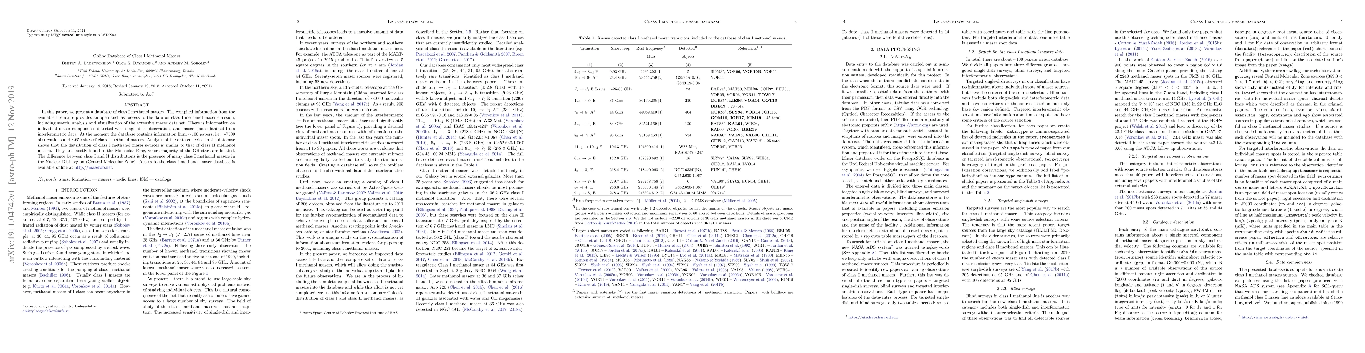 This paper introduces an online database of class I methanol masers, compiling data from ~100 papers with ~7500 observations and ~650 sites. The database facilitates search, analysis, and visualization, revealing that class I masers are predominantly found in the Molecular Ring and the Nuclear Disk region.