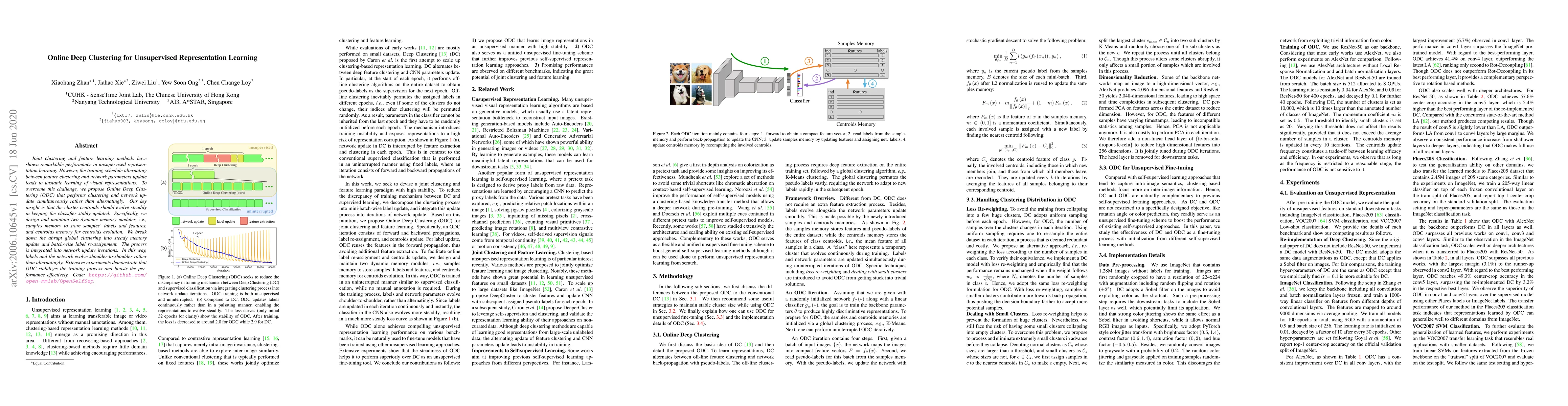 The paper proposes Online Deep Clustering (ODC) to stabilize unsupervised representation learning by simultaneously updating clustering and network parameters, contrasting with the unstable alternating schedule. ODC employs dynamic memory modules for sample and centroid evolution, breaking down global clustering into steady updates and batch-wise label re-assignment, which enhances training stability and performance.