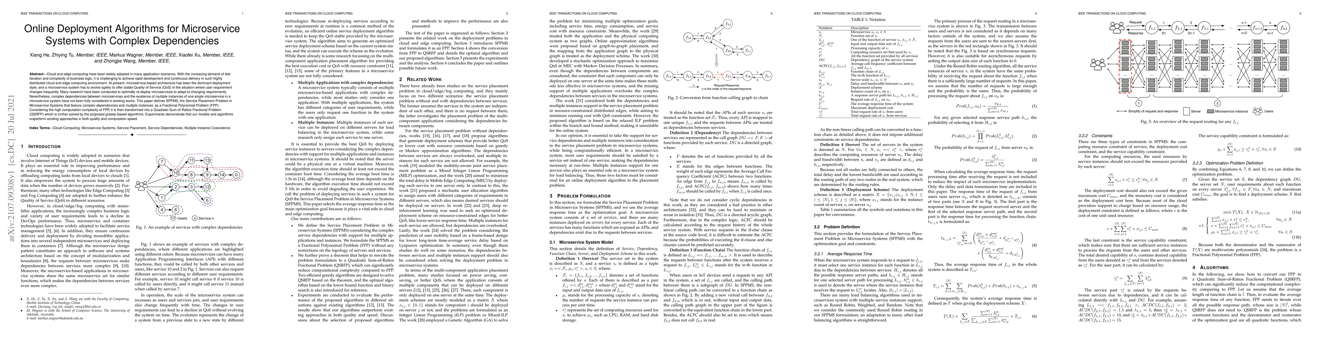 This paper proposes algorithms to optimize the deployment of microservices in complex, distributed systems, addressing the Service Placement Problem in Microservice Systems (SPPMS) with intricate dependencies and multiple instances. The authors transform the problem into a Quadratic Sum-of-Ratios Fractional Problem (QSRFP) and solve it using greedy-based algorithms, showing superior performance over existing methods.