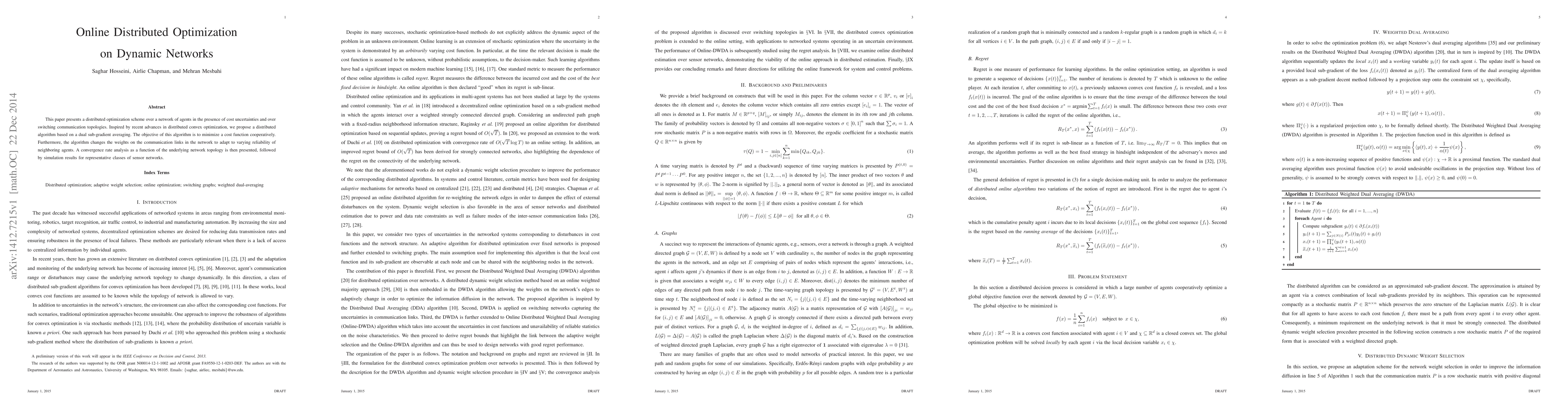 This paper presents a distributed optimization scheme over a network of agents in the presence of cost uncertainties and over switching communication topologies. Inspired by recent advances in distributed convex optimization, we propose a distributed algorithm based on a dual sub-gradient averaging. The objective of this algorithm is to minimize a cost function cooperatively. Furthermore, the algorithm changes the weights on the communication links in the network to adapt to varying reliability of neighboring agents. A convergence rate analysis as a function of the underlying network topology is then presented, followed by simulation results for representative classes of sensor networks.