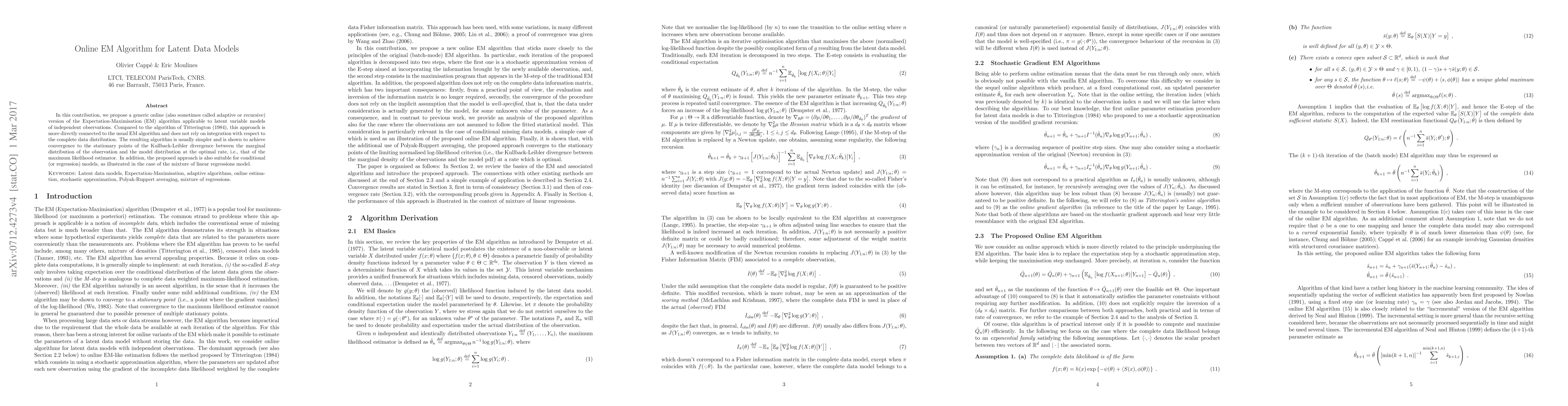 Researchers propose an online EM algorithm for latent data models, achieving convergence to optimal rates like maximum likelihood estimators, making it suitable for conditional regression models.