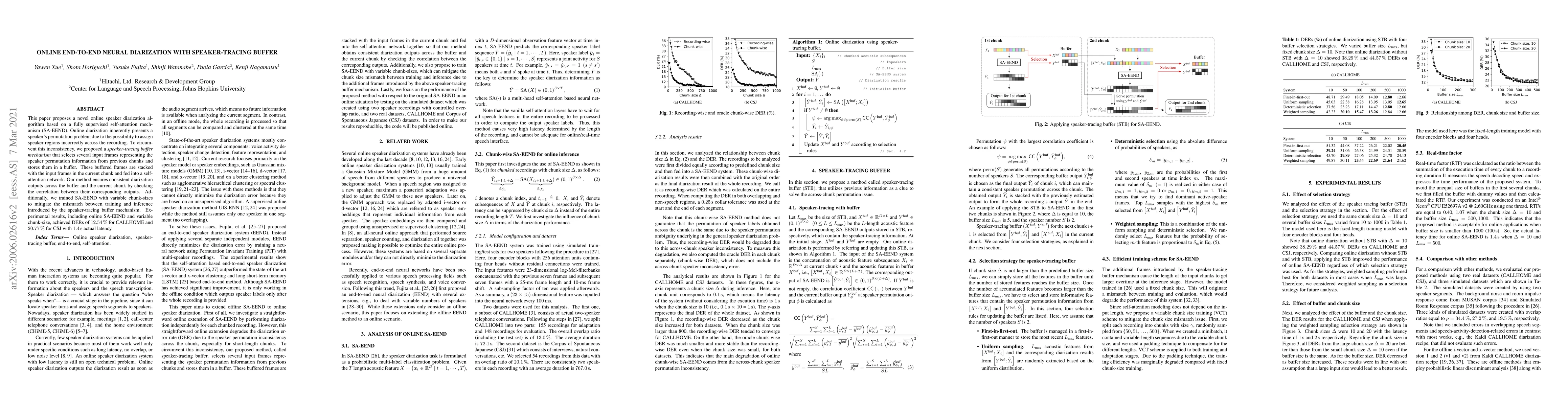 This paper introduces an online end-to-end neural diarization algorithm using a self-attention mechanism with a speaker-tracing buffer to address speaker permutation issues. The method achieved 12.54% and 20.77% DERs on CALLHOME and CSJ datasets with 1.4s latency.