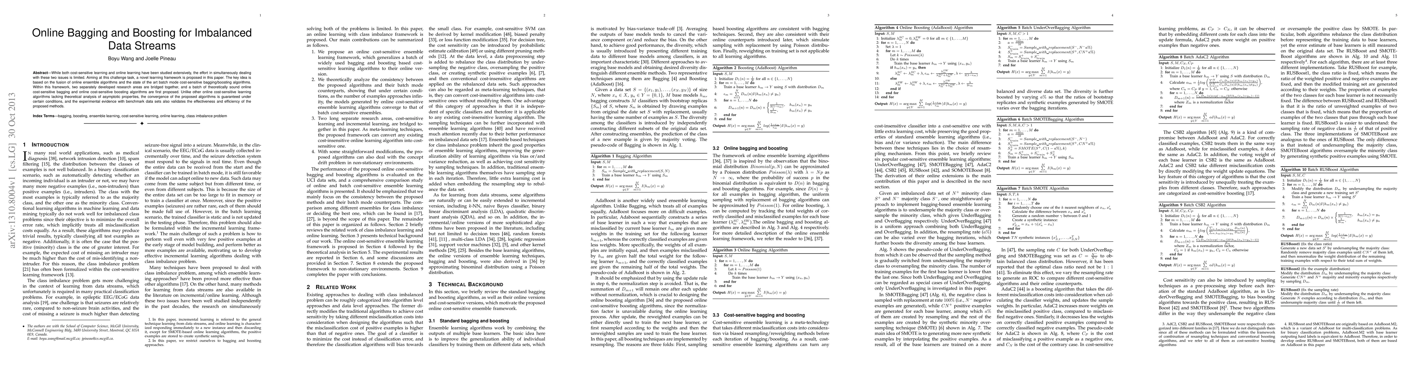 This paper proposes a novel online ensemble learning framework to address the challenge of imbalanced data streams by integrating online learning with cost-sensitive batch algorithms. The framework introduces theoretically sound online cost-sensitive bagging and boosting algorithms, ensuring convergence and validating their effectiveness through experimental benchmarks.
