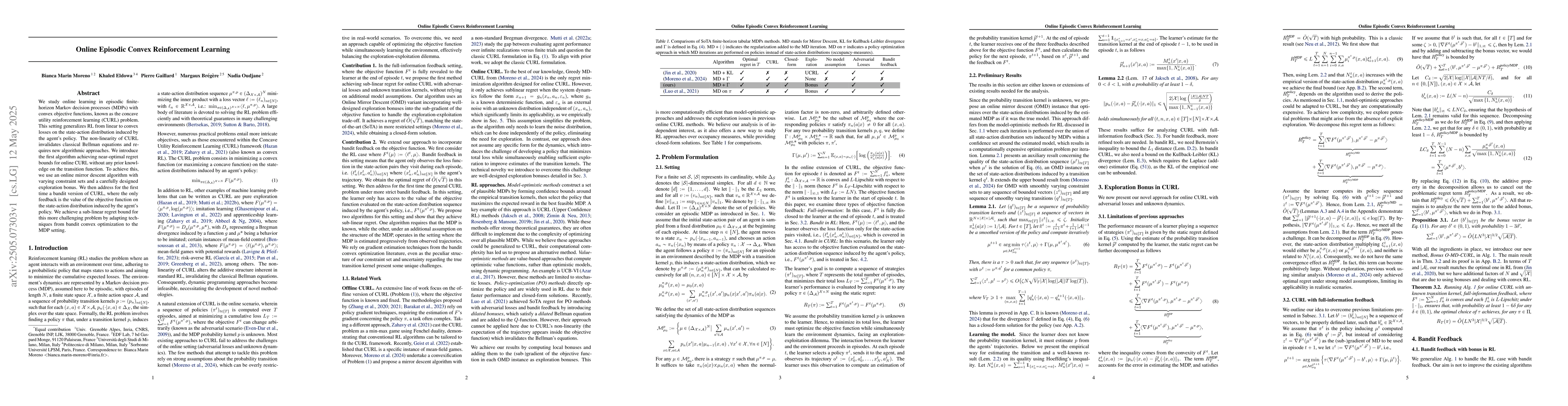 The paper introduces an online mirror descent algorithm with varying constraint sets and an exploration bonus for the concave utility reinforcement learning (CURL) problem, addressing both full-information and bandit settings of episodic convex MDPs.
