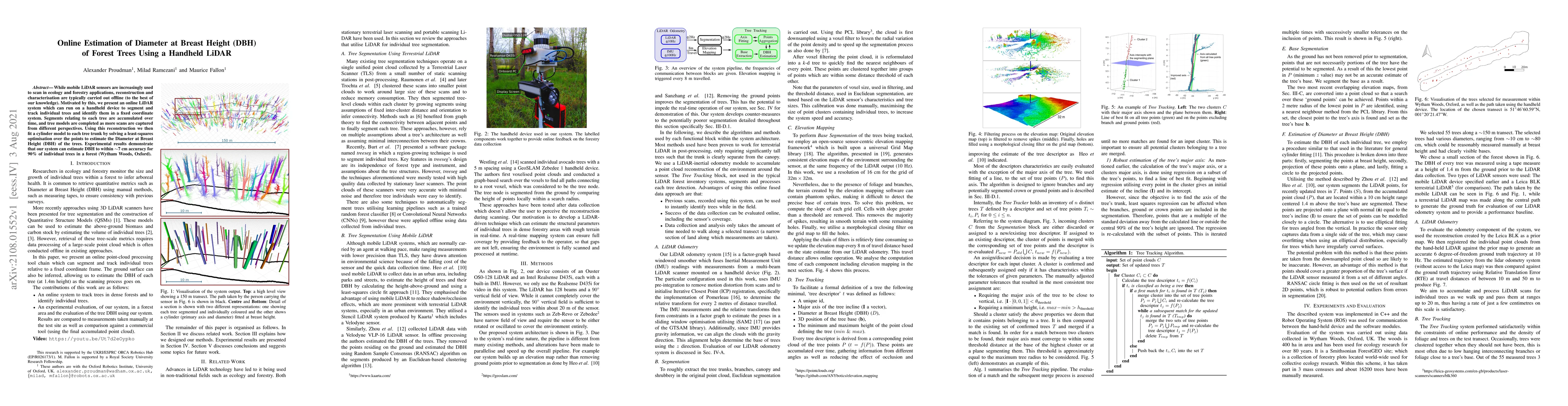 Researchers developed an online LiDAR system that can estimate tree diameter at breast height with accuracy of 7 cm for 90% of individual trees in a forest. The system uses handheld devices to scan trees over time and reconstruct their models.