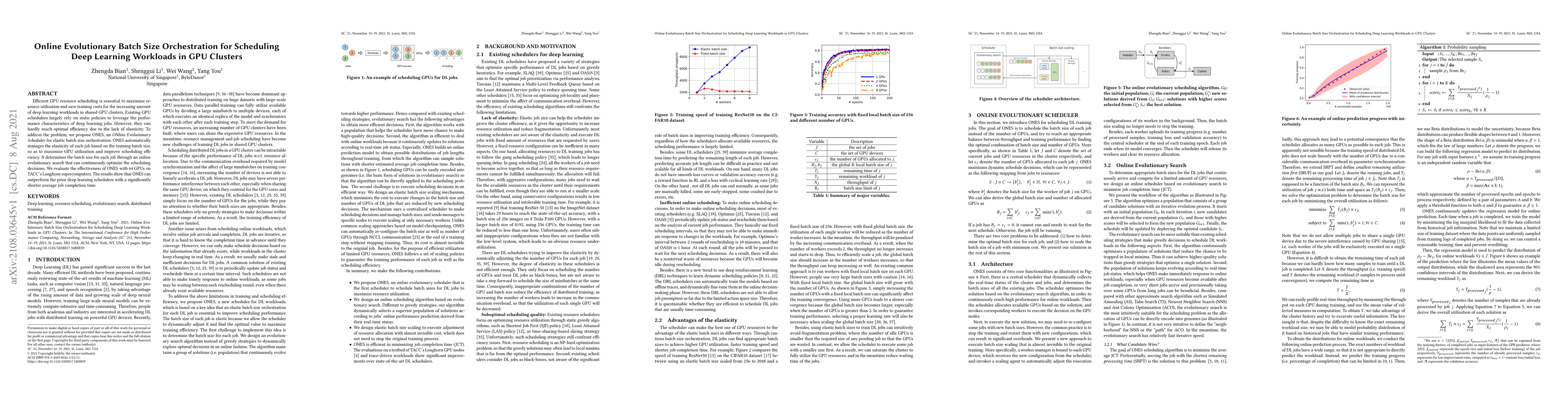 The paper proposes ONES, an ONline Evolutionary Scheduler for dynamically adjusting batch sizes in GPU clusters to optimize resource utilization and reduce training costs for deep learning workloads. Evaluations on TACC's Longhorn supercomputers demonstrate that ONES significantly reduces average job completion time compared to existing static schedulers.
