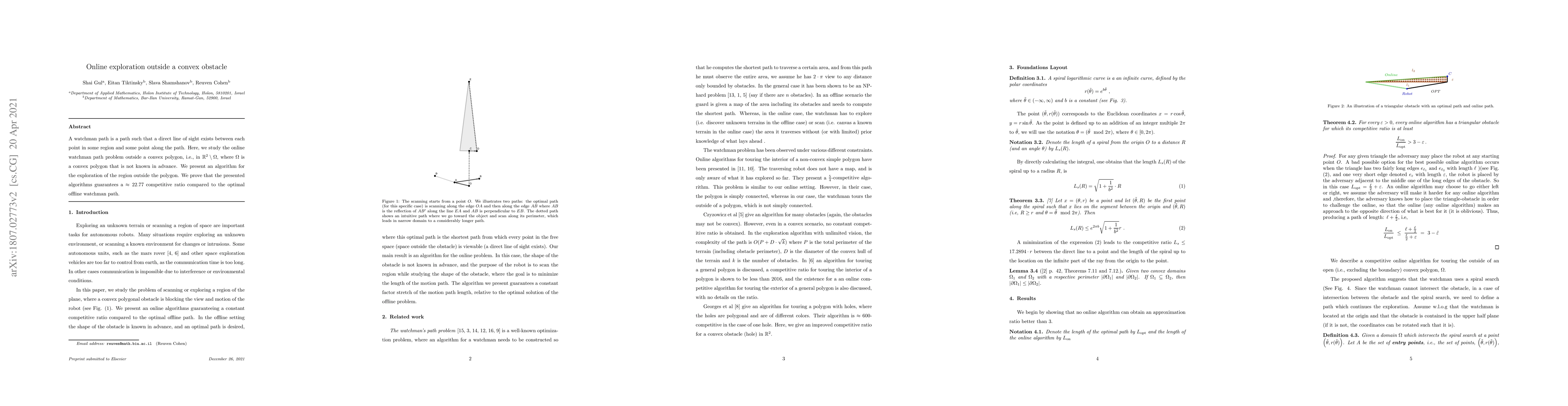 Researchers developed an algorithm to explore a region outside a convex polygon without prior knowledge of its shape, achieving a competitive ratio of approximately 22.77 compared to the optimal offline solution.