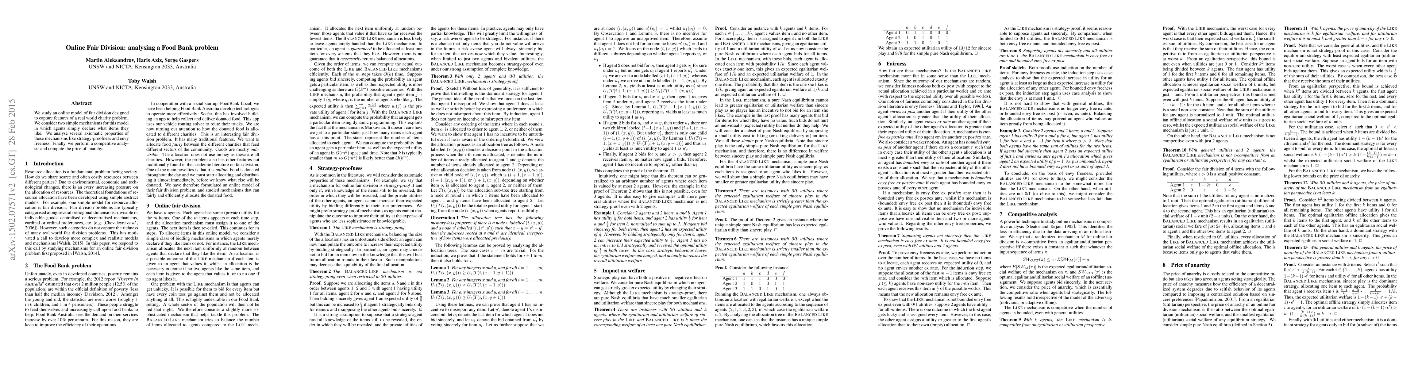 This research paper analyzes two mechanisms for fair division of items at a food bank, studying their strategy-proofness and envy-freeness while also calculating the price of anarchy.